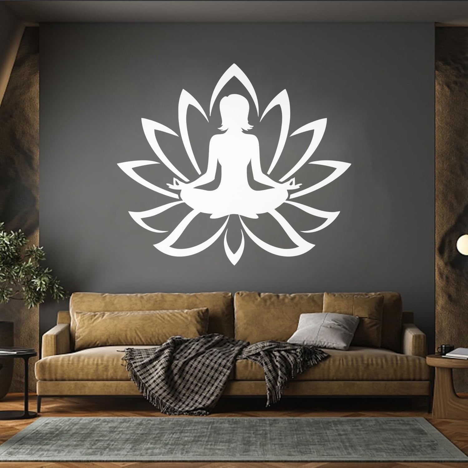 Engraving Decals Yoga Studio Meditation Lotus Woman Flower Glass Stickers