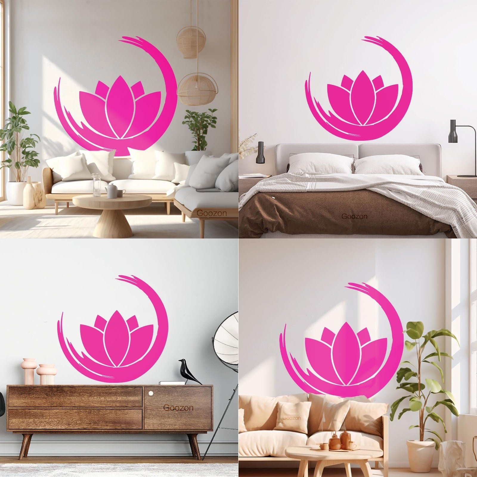 Wall Vinyl Sticker Decor Zen Enso Om Lotus Flower Bud Symbol Yoga Room Removable Without Leaving Glue