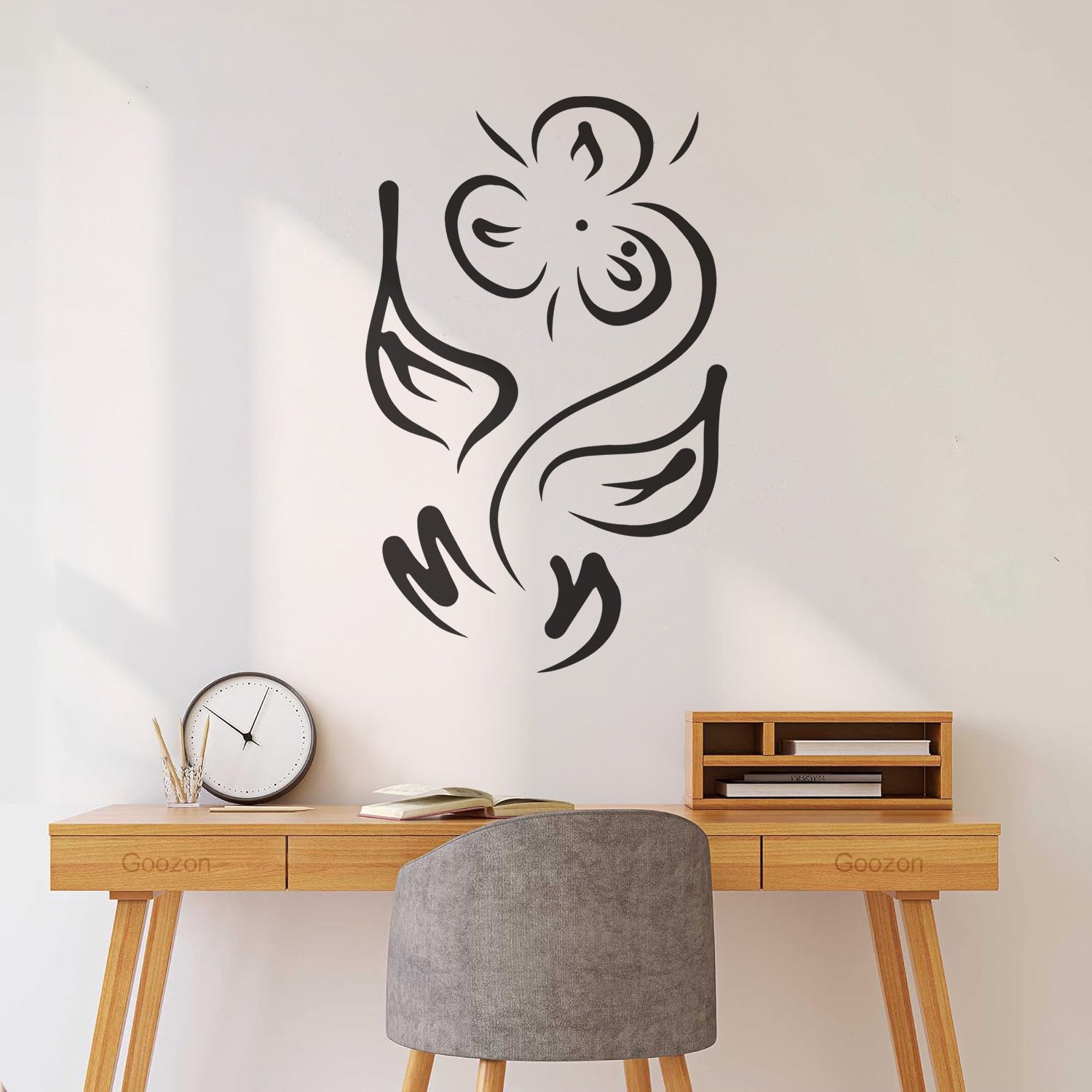 Gently press the decal area to secure it firmly to the wall.