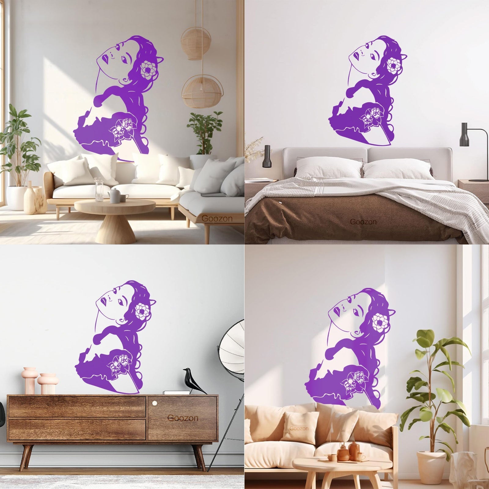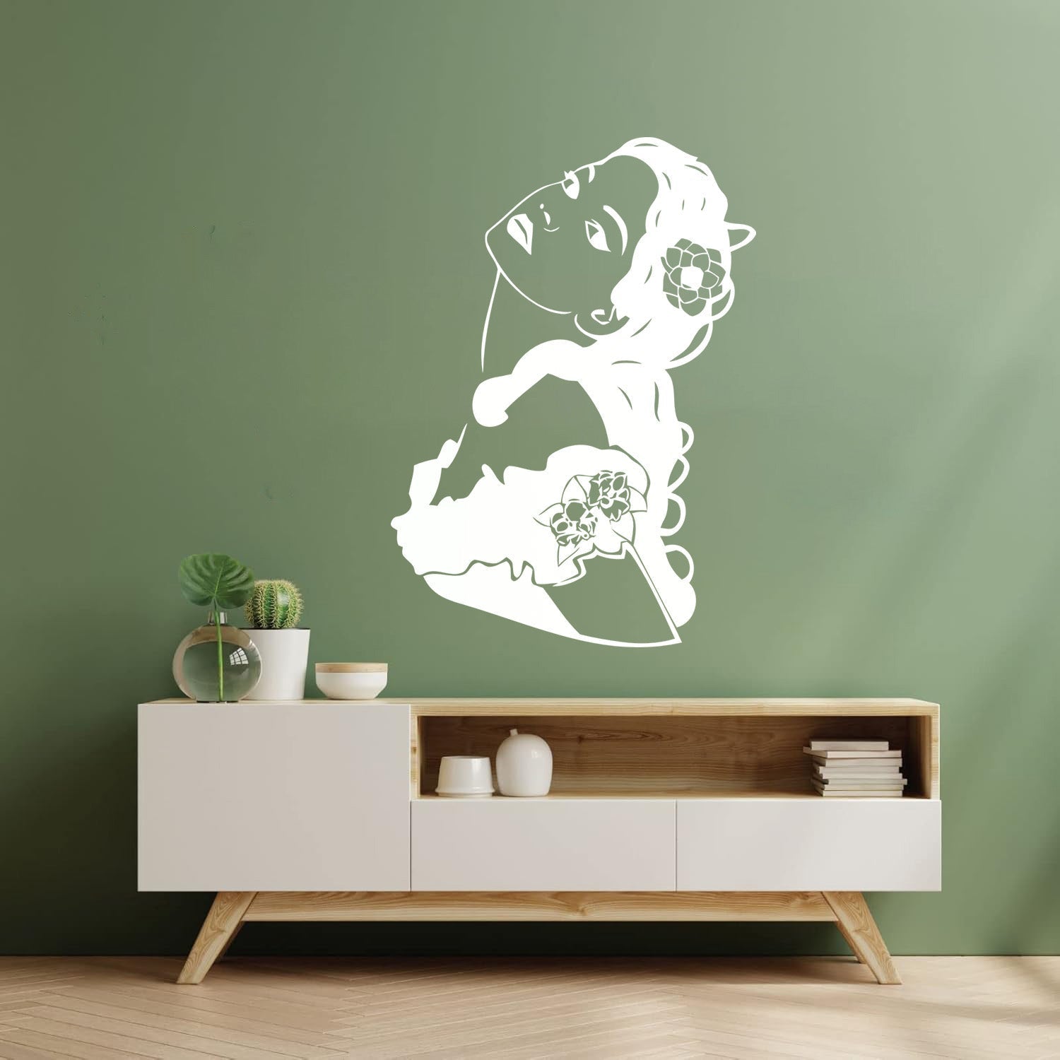 Woman Girl Flower Hair Modern Mural And Wall Vinyl Decal Waterproof