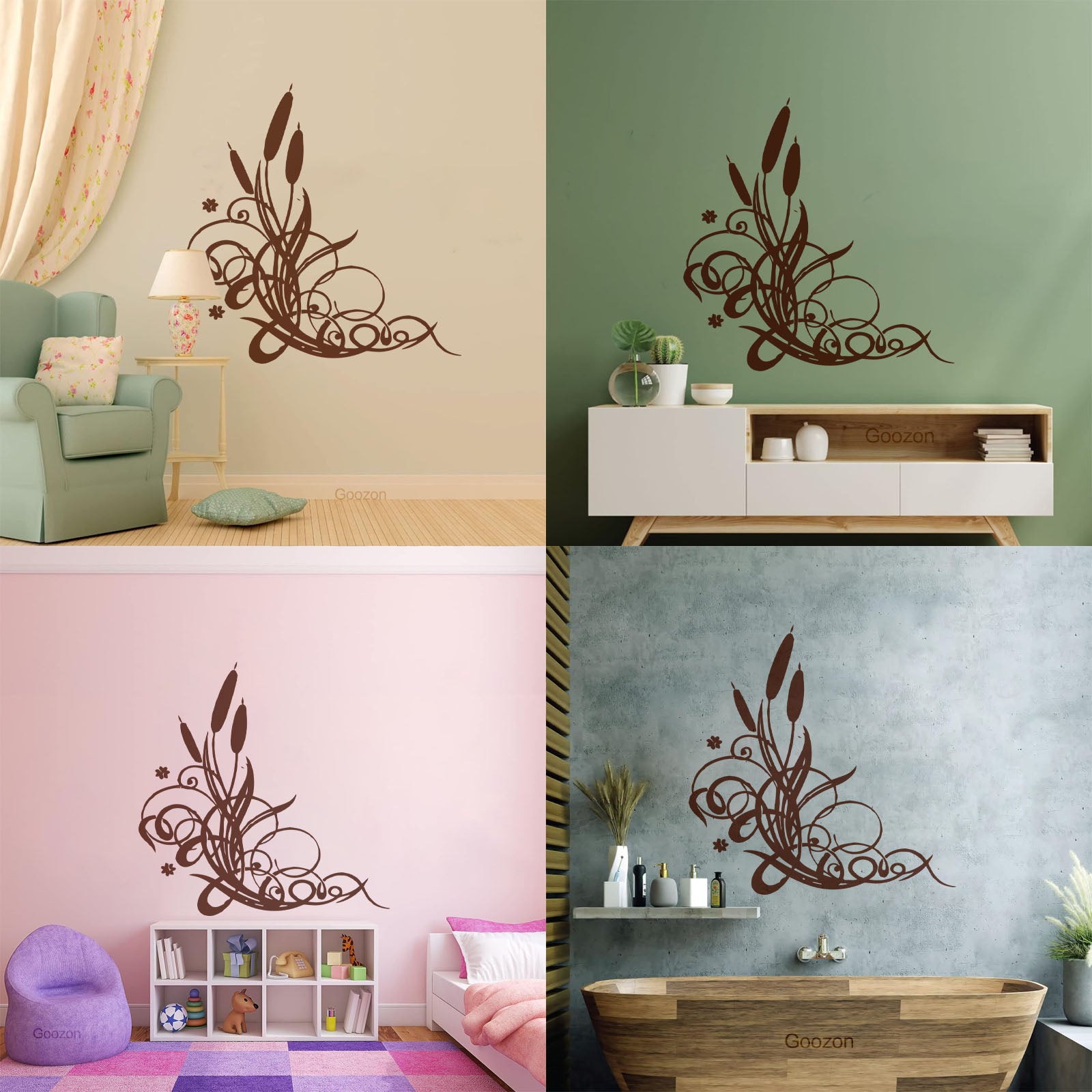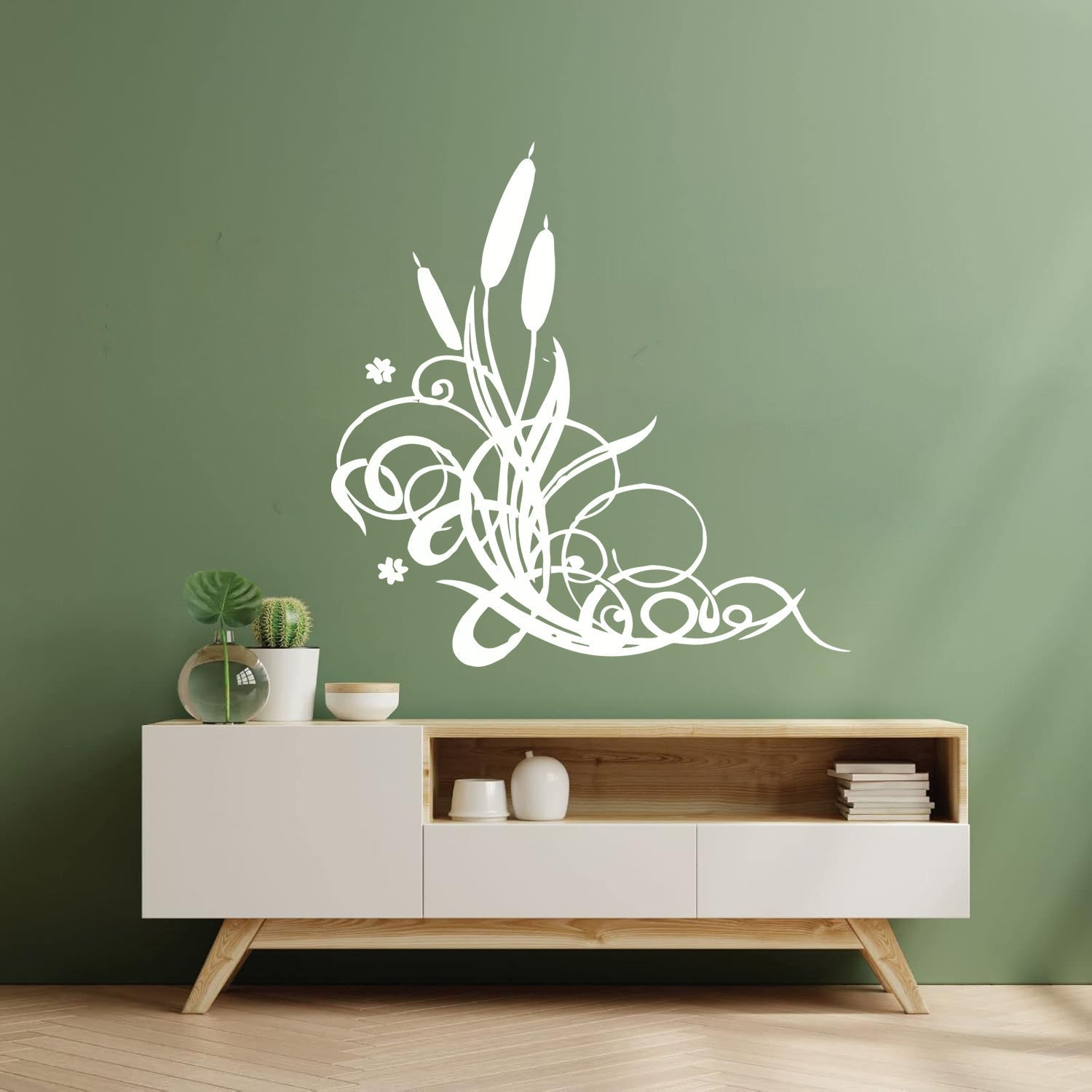 Wall Vinyl Sticker Decor Marsh Bulrush Bush Cane Grass Flowers Personalized Customization