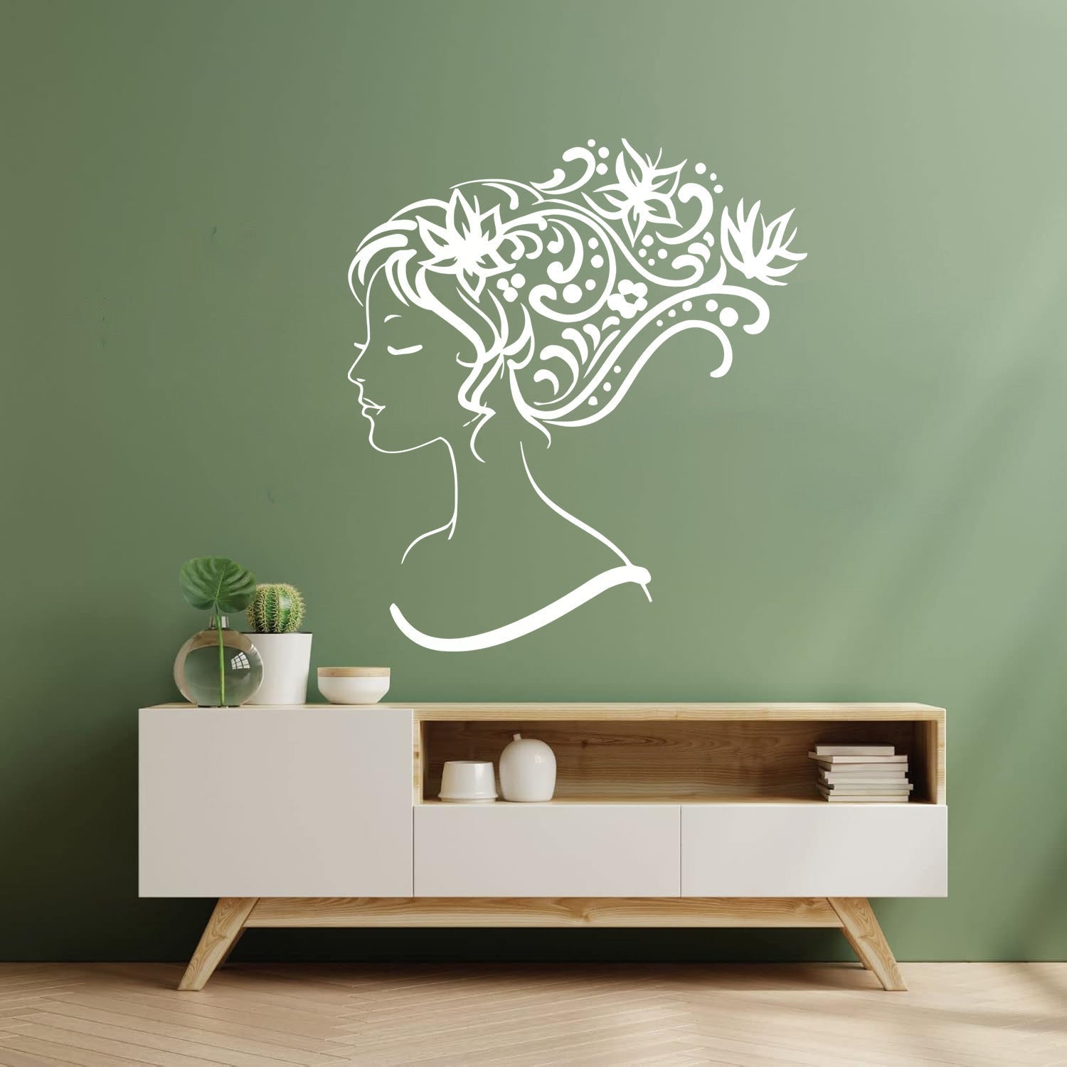 Wall Stickers Woman Abstract Hair Salon Stylist Flower Art Decoration