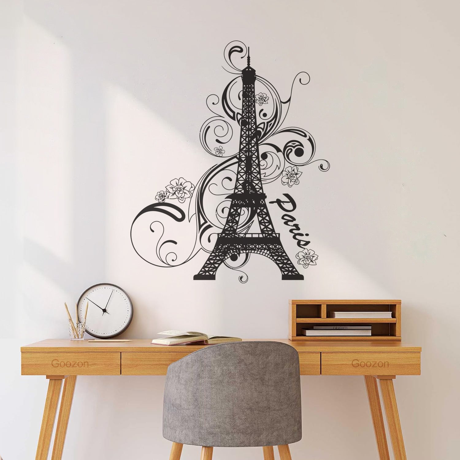 Paris Flower Romantic Eiffel Tower Vacation Wall Decals Paster Paper Glass Stickers