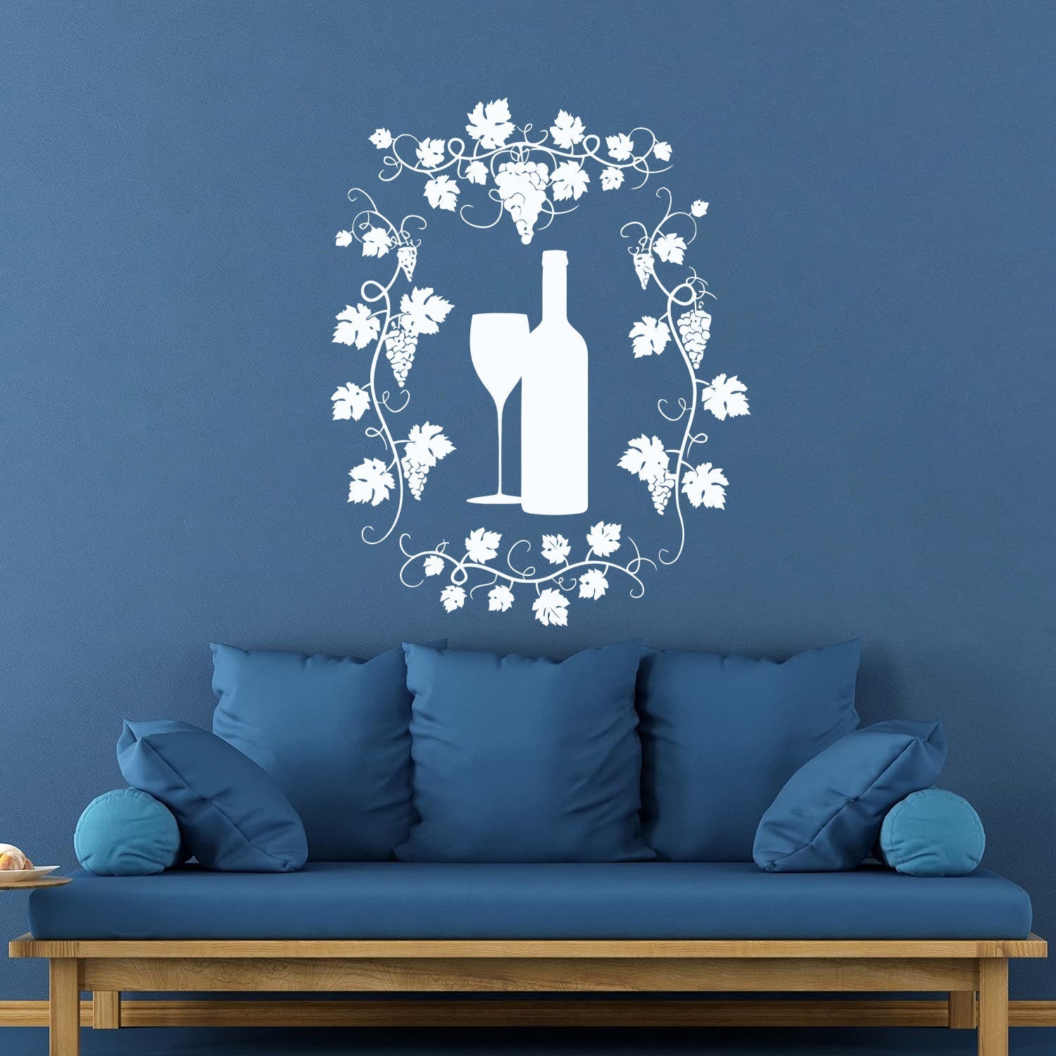 Wall Vinyl Sticker Decor Restaurant Grape Bunches Bottle Of Wine Glass Drink Self Adhesive
