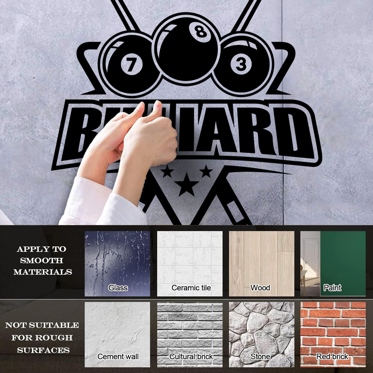 Vinyl Art Sticker Billiard Balls Lettering Cue Numbers Easy Installation