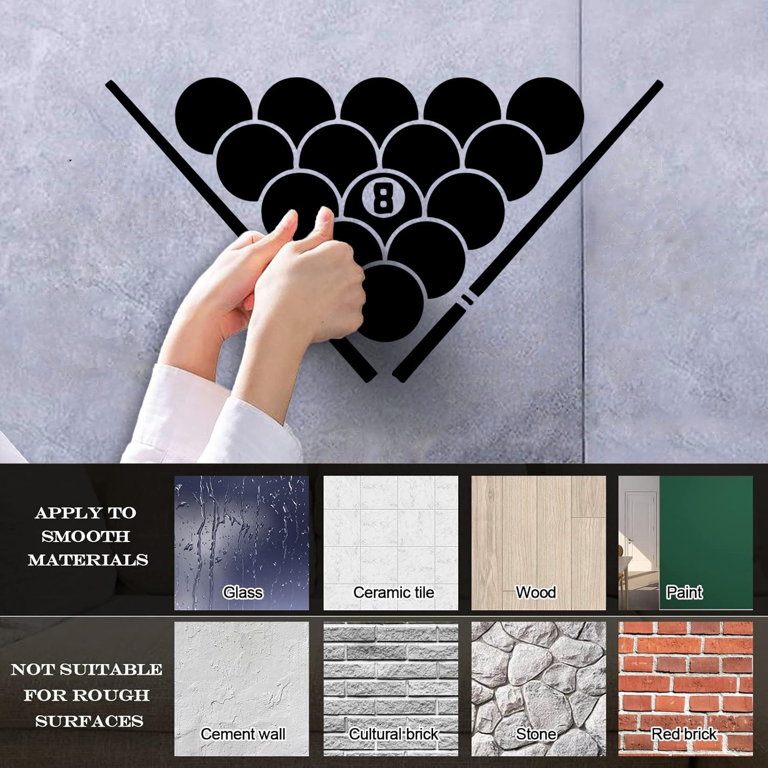 Lettering Decals Billiards Balls Entertainment Man Cave Pool Room Store Decoration