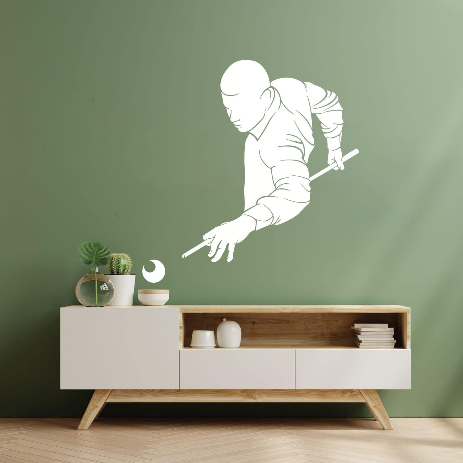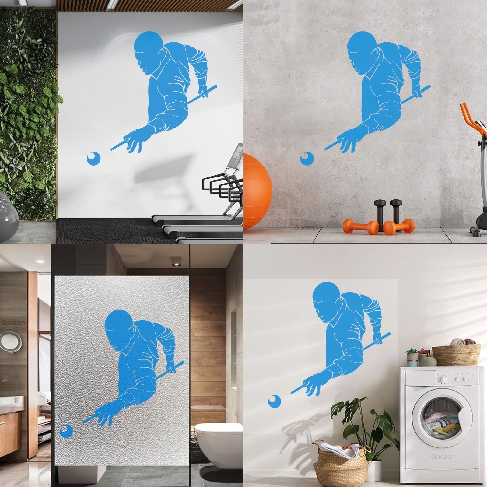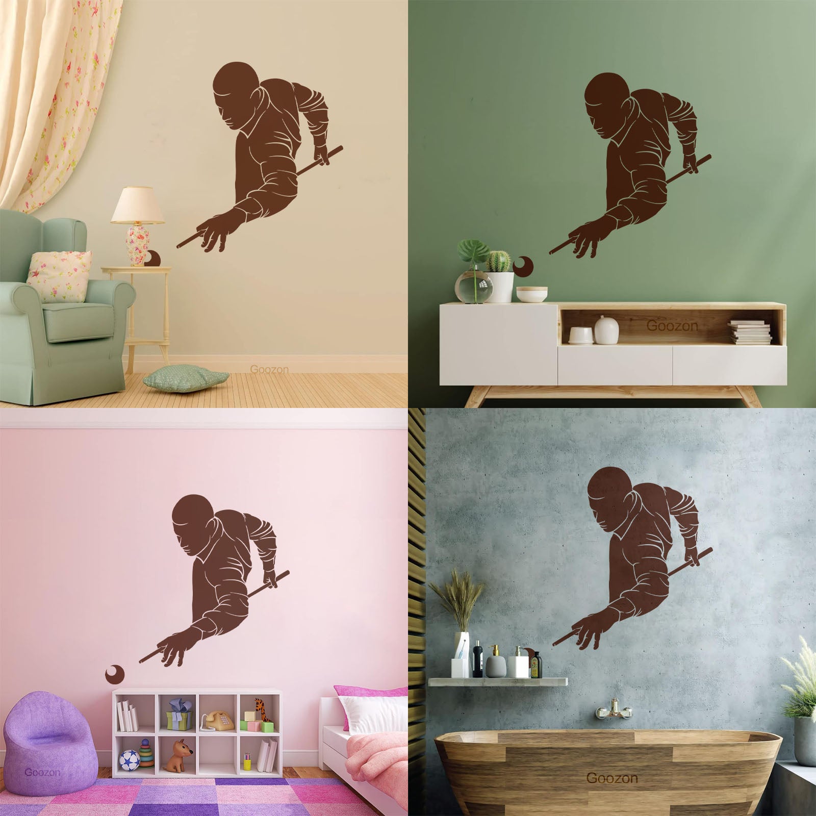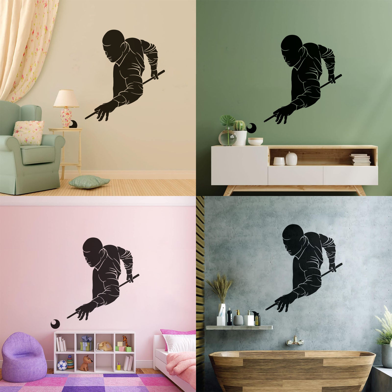 Wall Decals Paster Paper Billiards Club Playing Man Games Cue Self Adhesive
