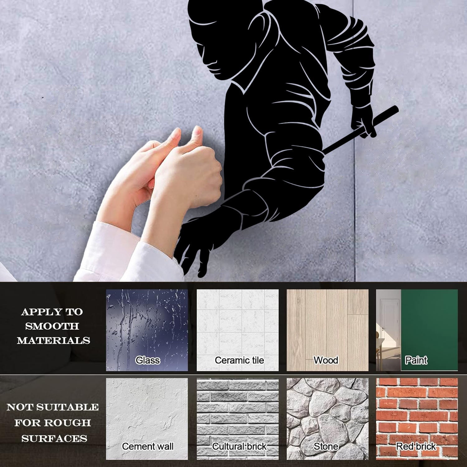 Gently press the decal area to secure it firmly to the wall.
