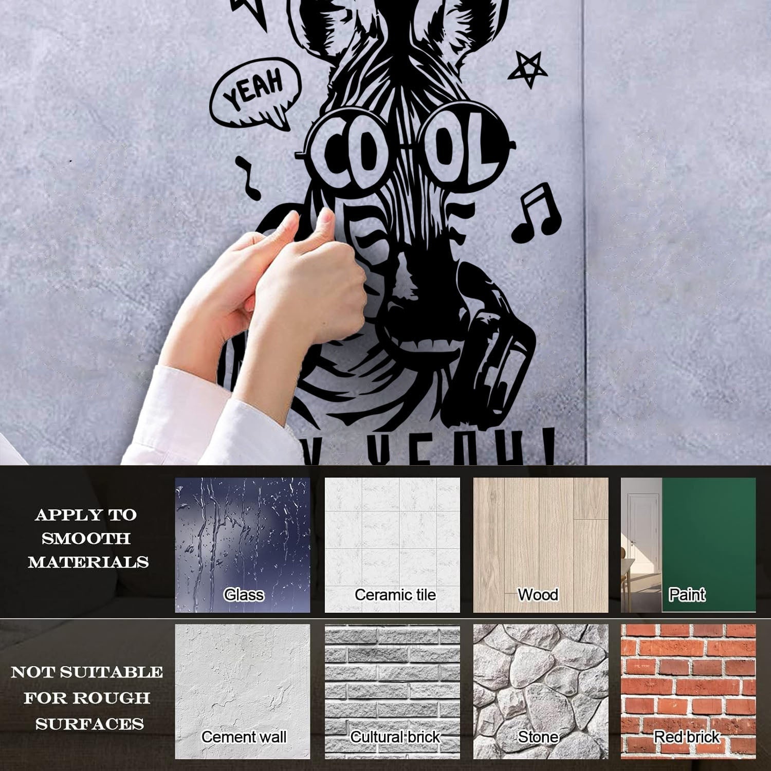 Engraving Decals Phrase Say Yeah Cool Zebra Headphones Store Decoration
