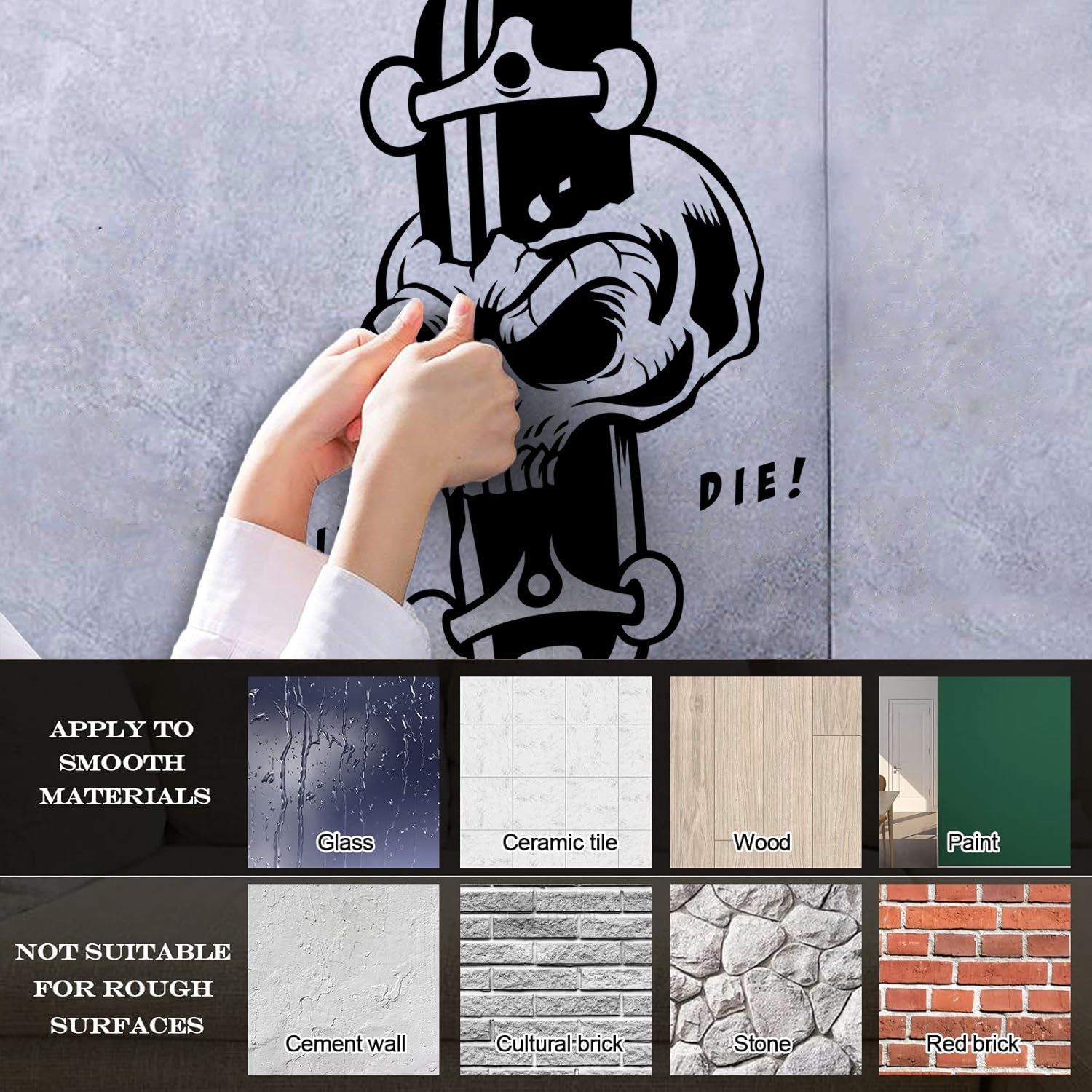 Lettering Stickers Skeleton Boards Till Die Skateboarding Skull Art Mural Painting