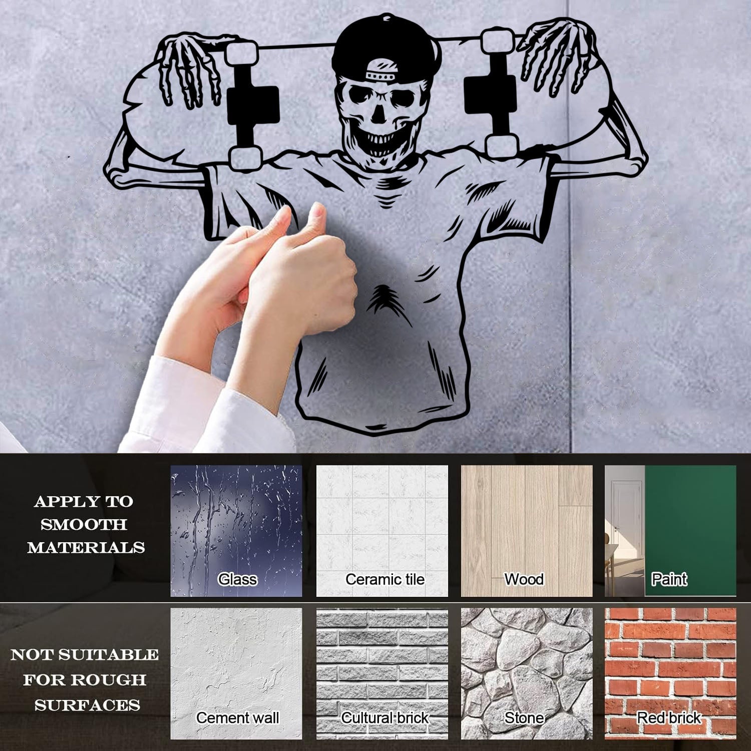 Skull Bones Cap Skateboard Skater Vinyl Wall Stickers Waterproof