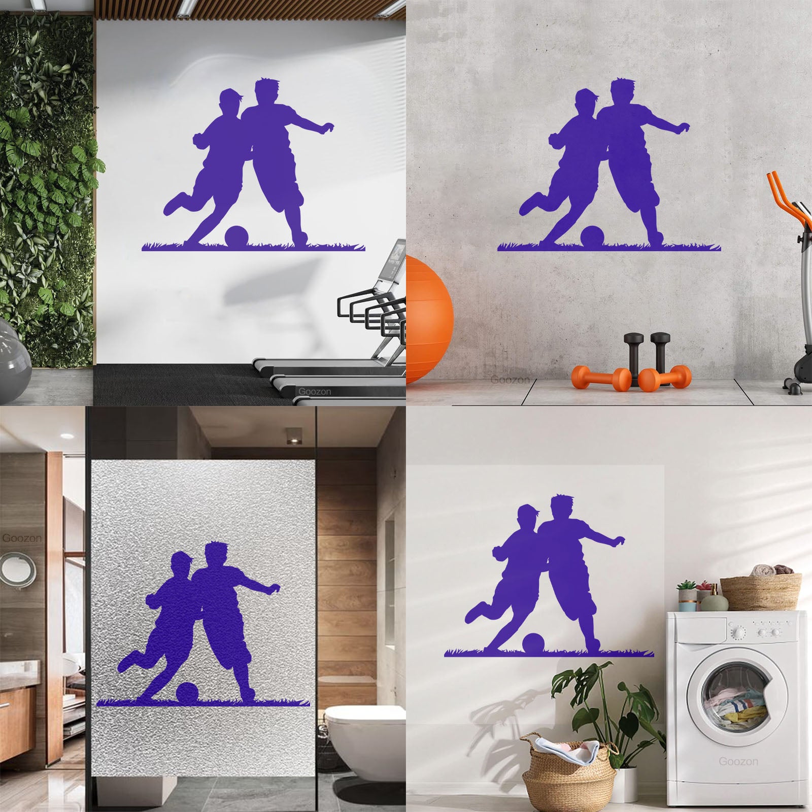 Fine Carving Stickers Soccer Boys Players Silhouette Ball Game Window Decals