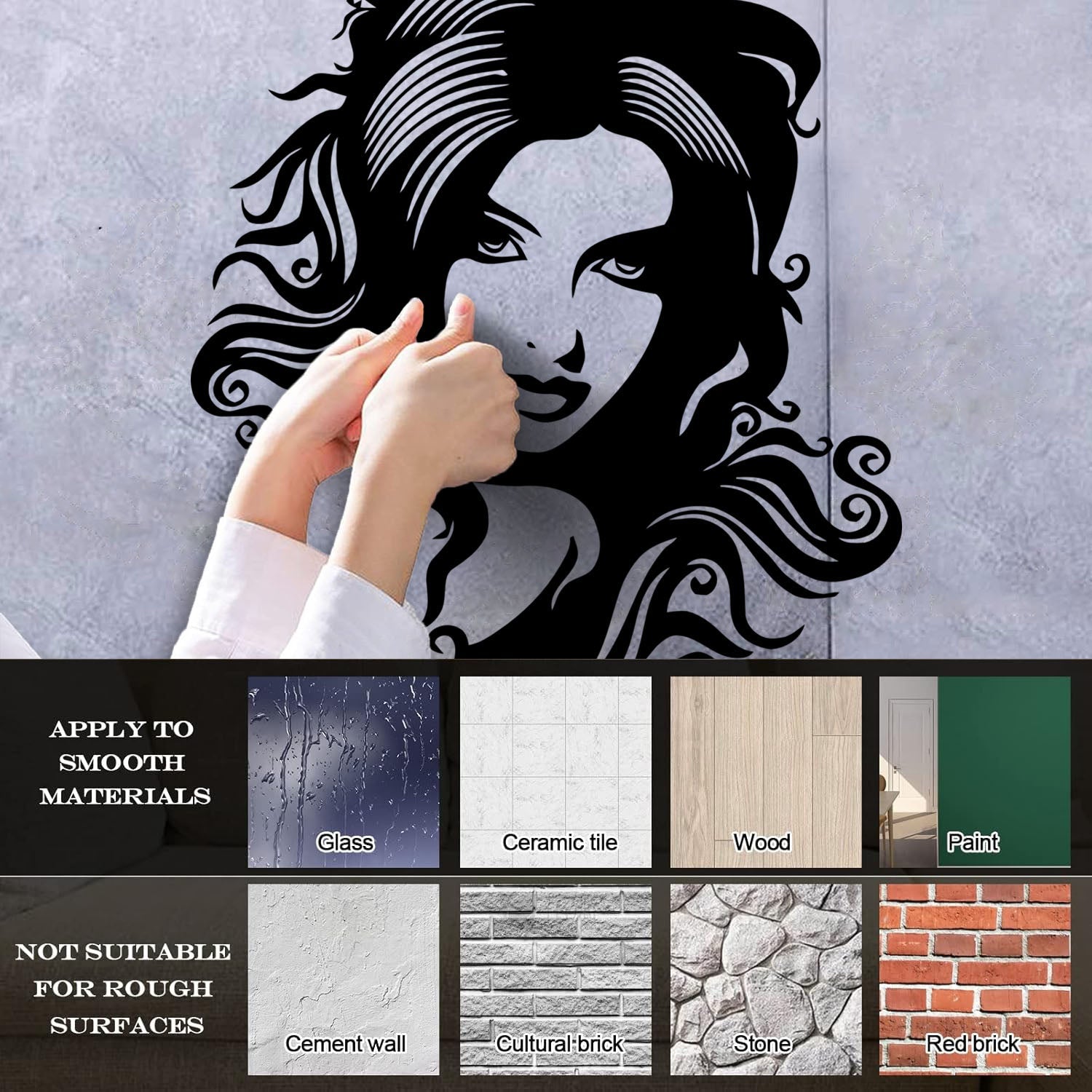 Gently press the decal area to secure it firmly to the wall.