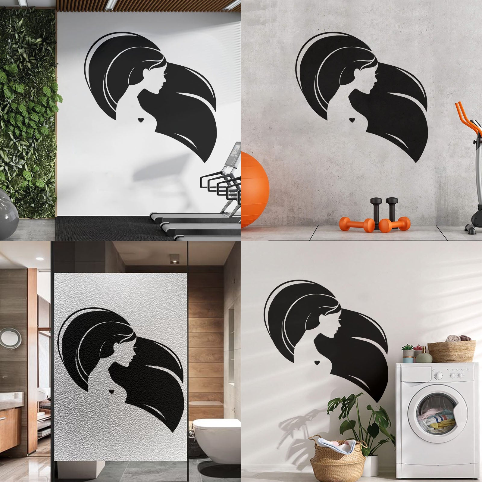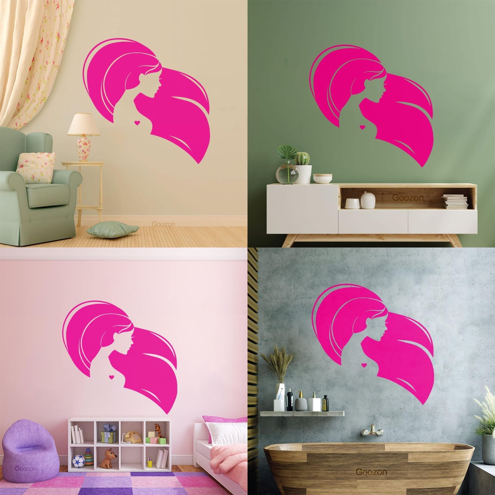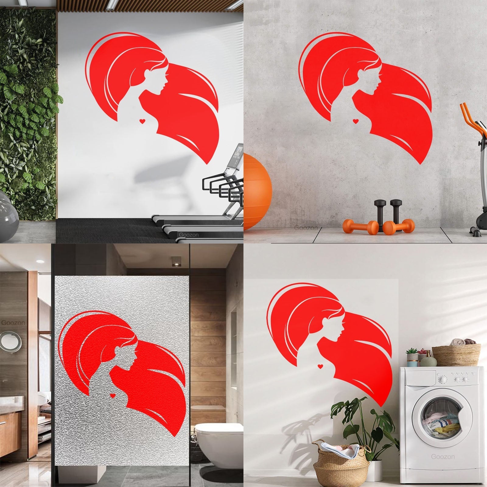 Wall Decals Pvc Beautiful Head Girl Heart Woman Long Hair Equipped With Transfer Film Kit