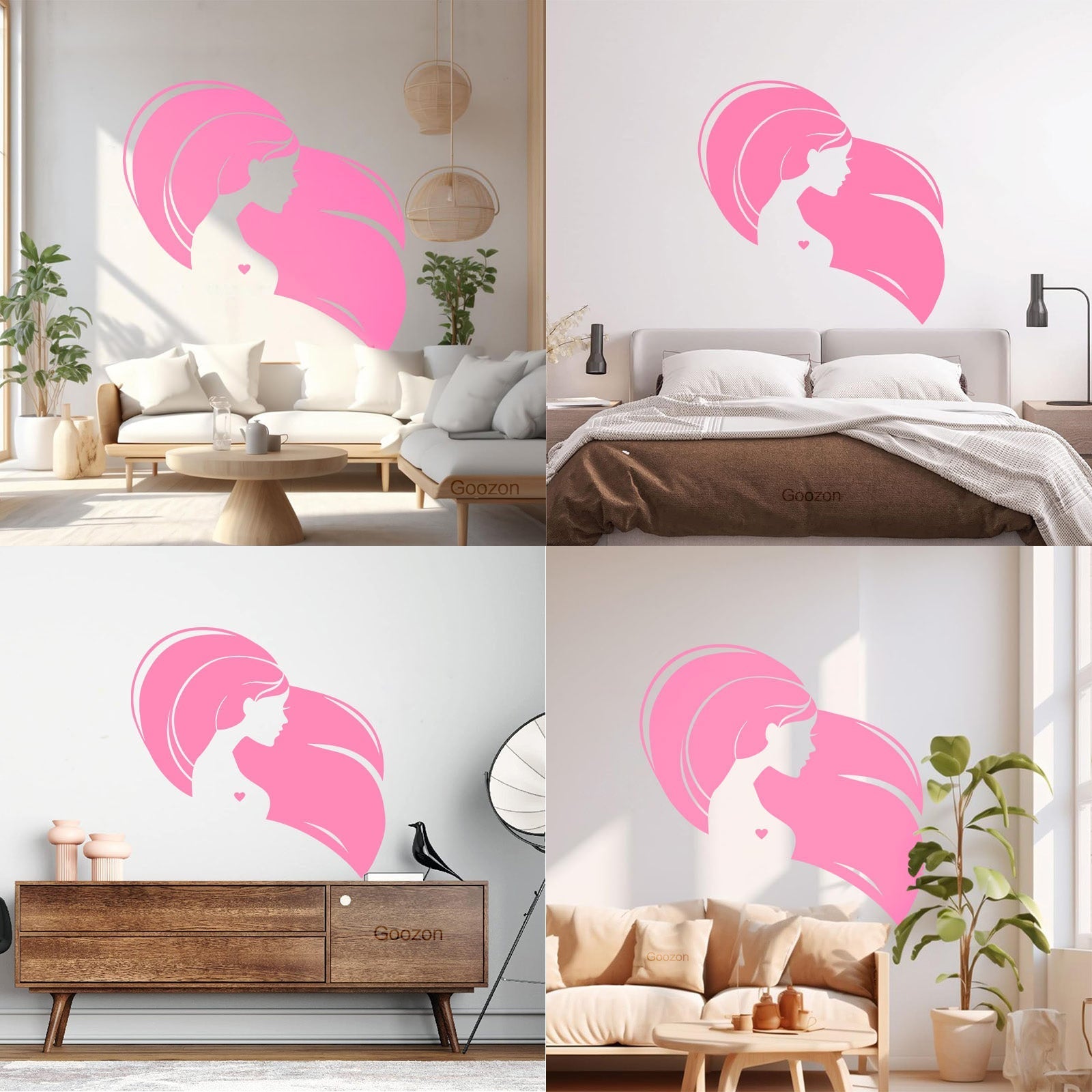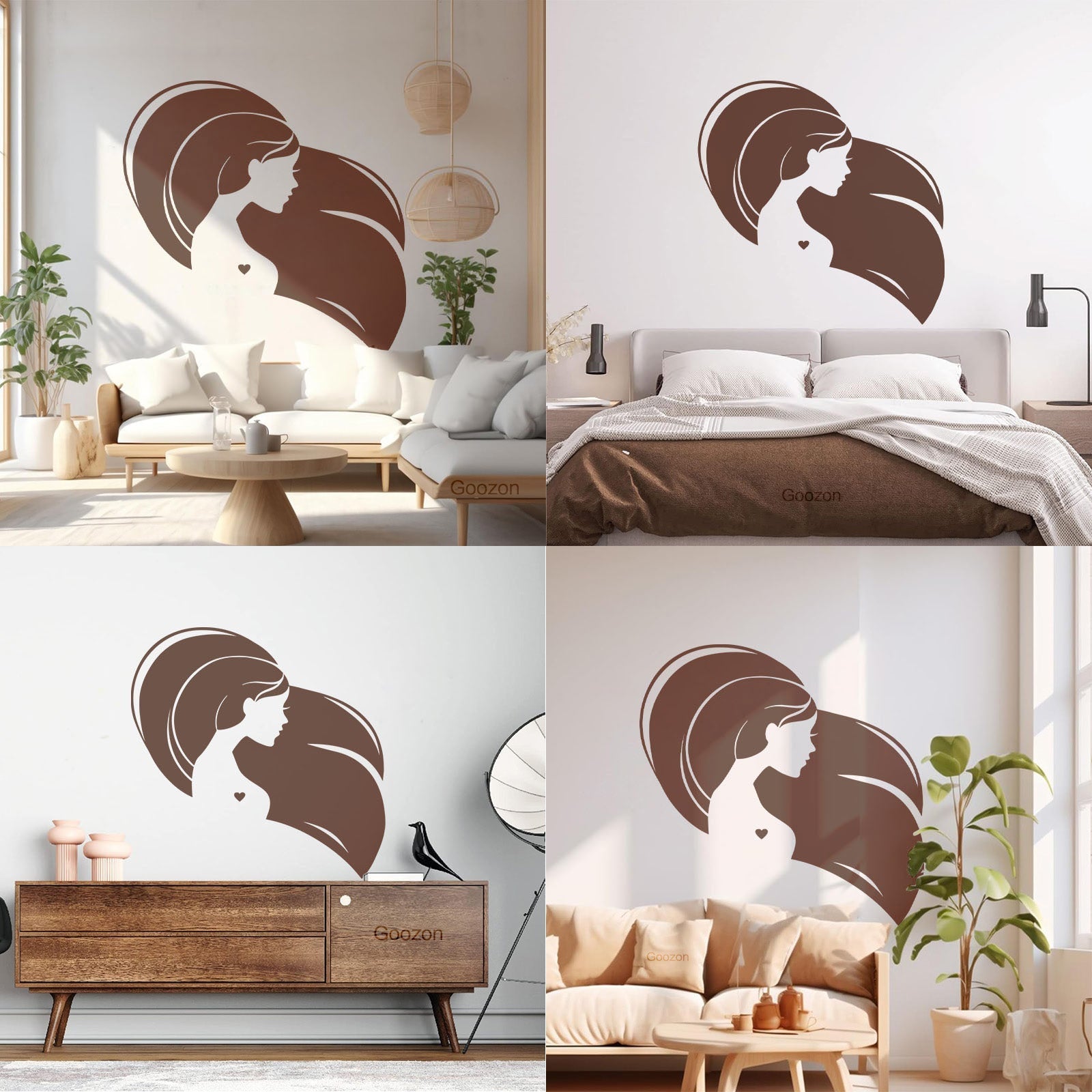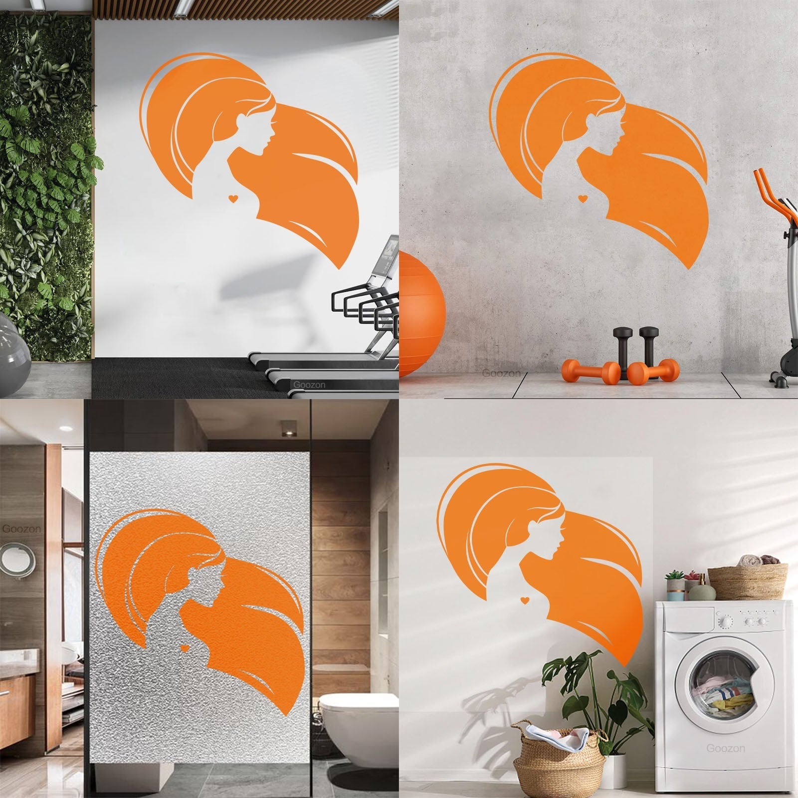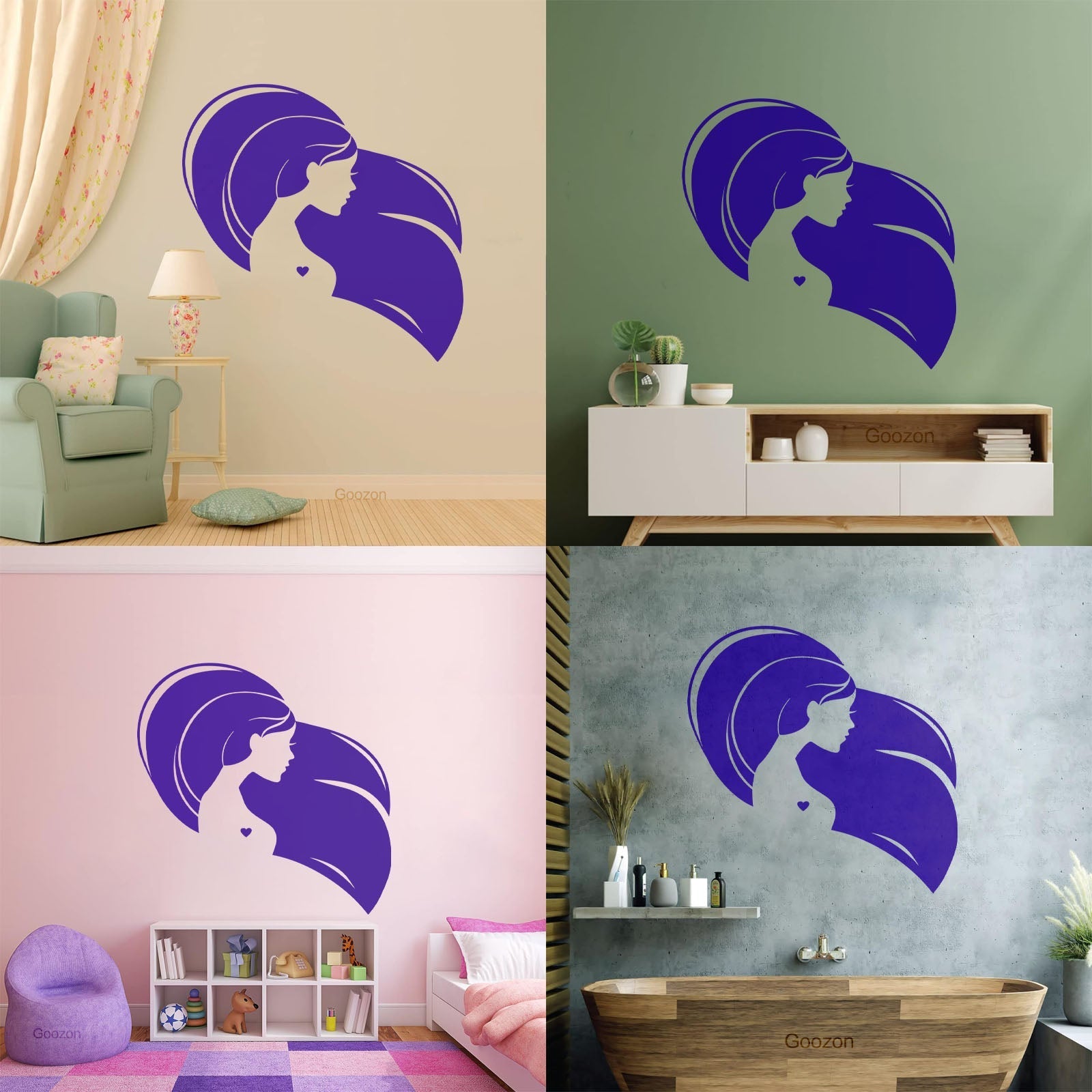 Wall Decals Pvc Beautiful Head Girl Heart Woman Long Hair Equipped With Transfer Film Kit