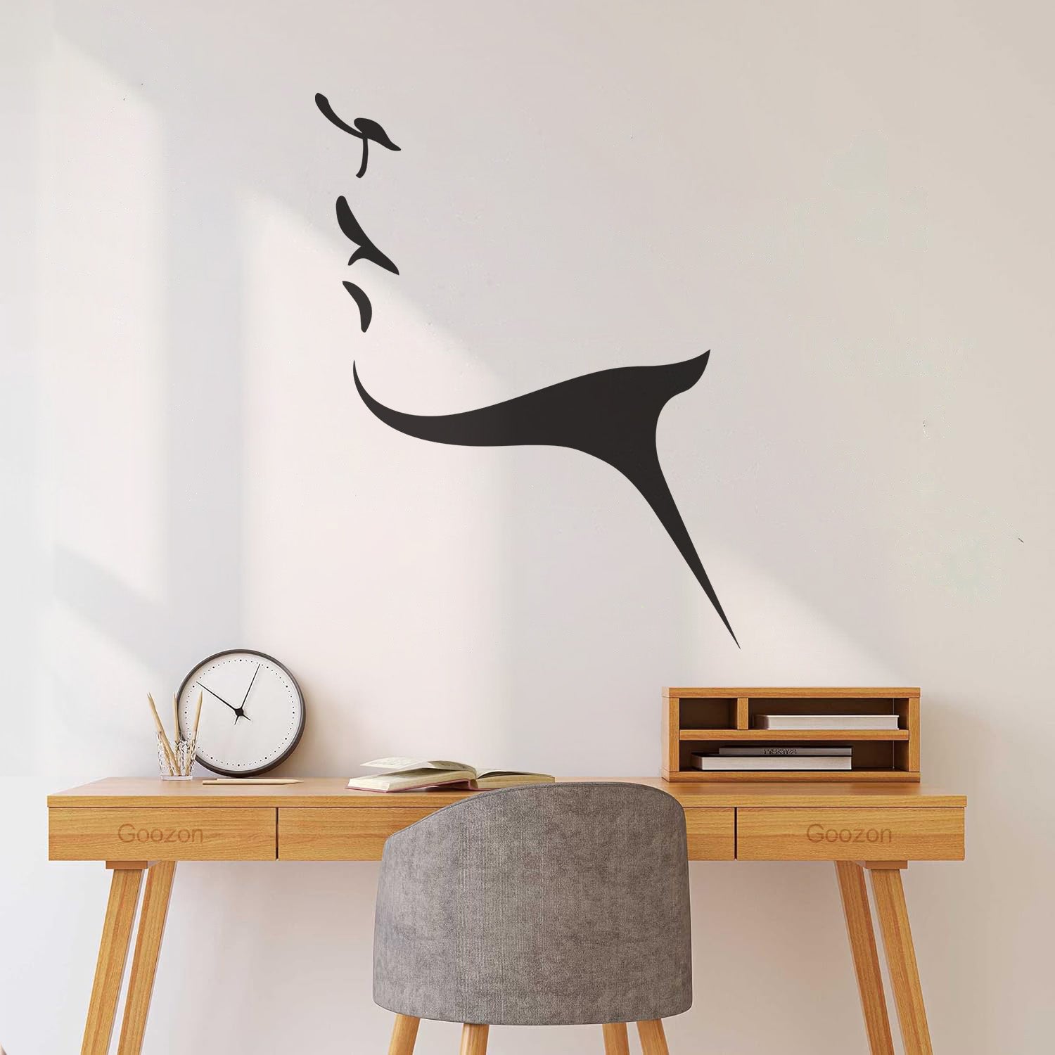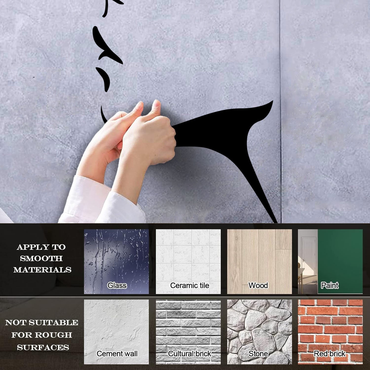 Gently press the decal area to secure it firmly to the wall.