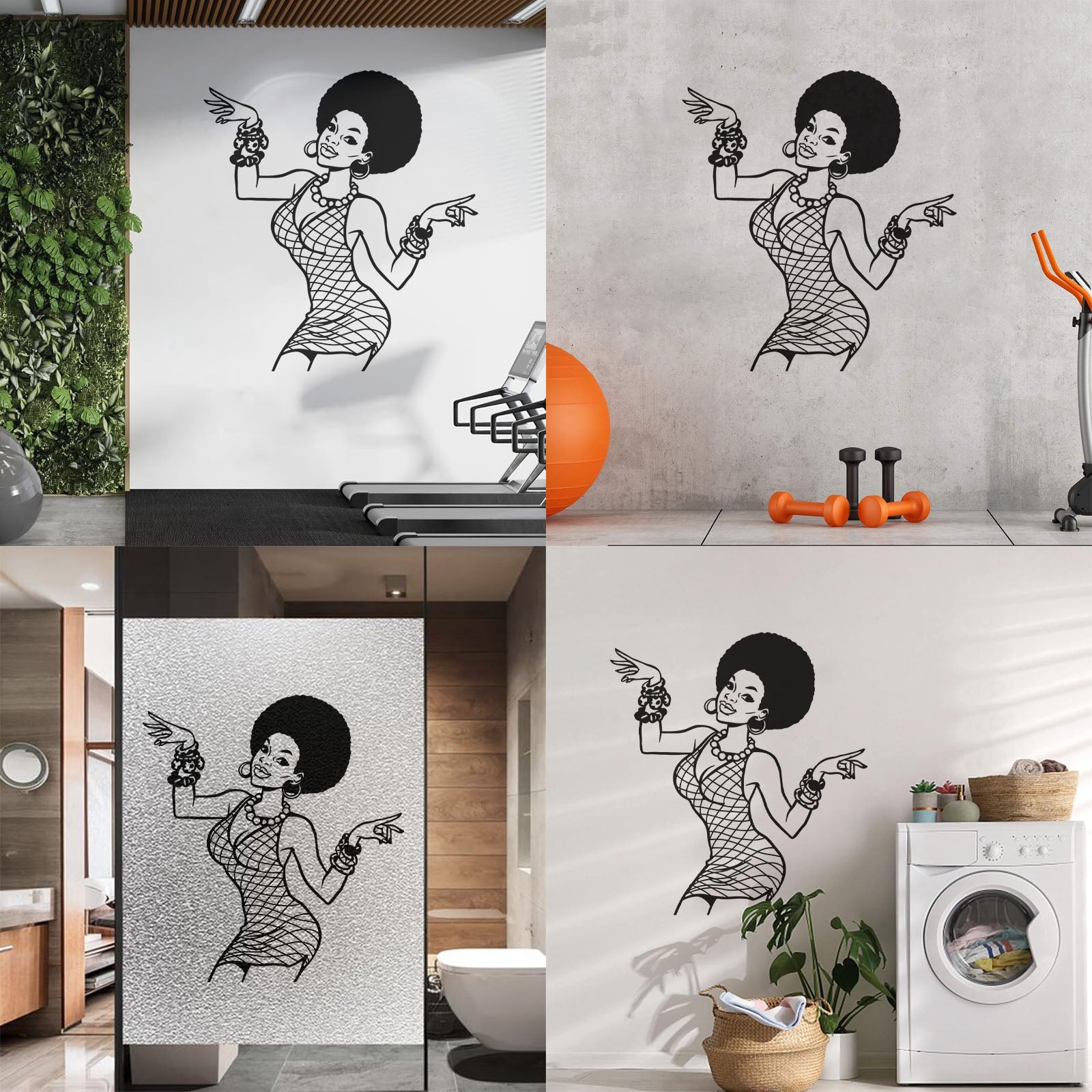 Engraving Decals Appeal Disco Girl Beauty Woman Afro Style Hippie Tattoo Culture