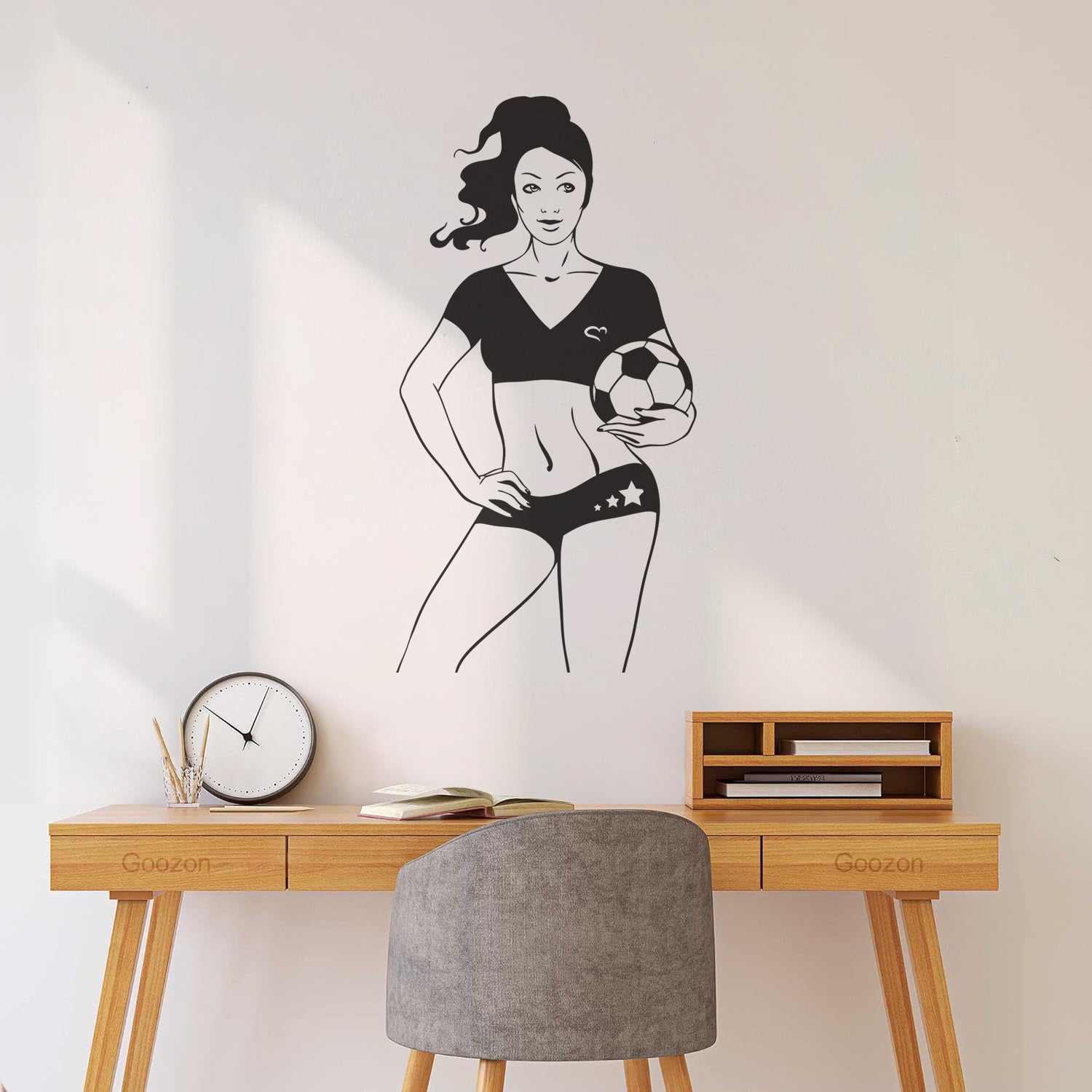 Soccer Girl Sports Woman Player Fine Carving Stickers Removable Without Leaving Glue