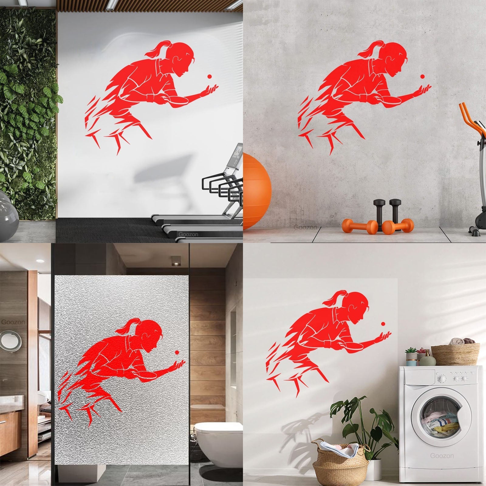 Mural And Wall Vinyl Decal Table Tennis Ping Pong Woman Girl Sport Home Wall Beautification