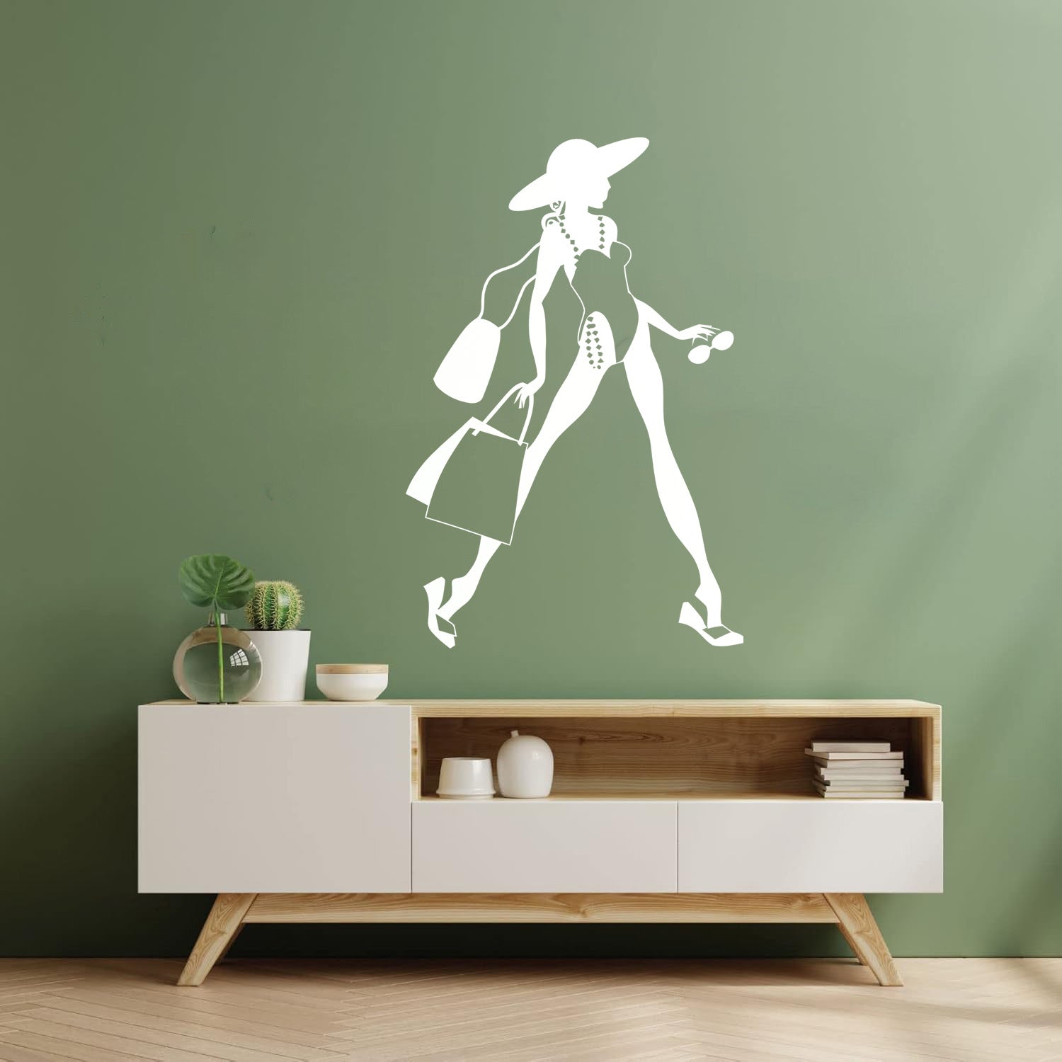 Vinyl Wall Stickers Woman Fashion Designer Style Shopping Girl Art Mural Painting