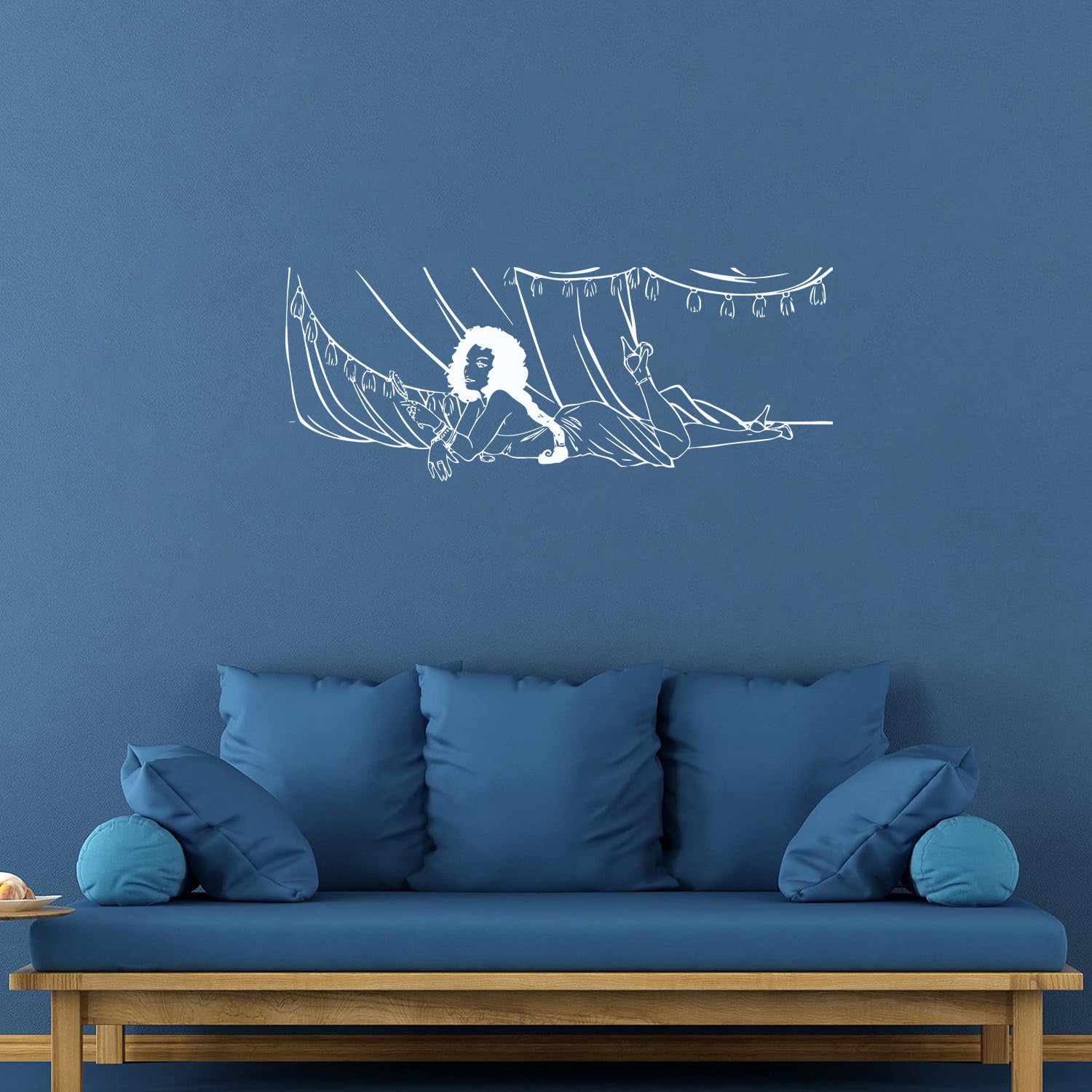 Gently press the decal area to secure it firmly to the wall.