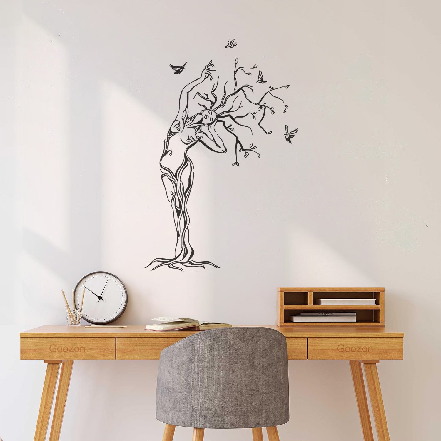 Fine Carving Stickers Natural Girl Tree Birds Woman Multiple Size Options