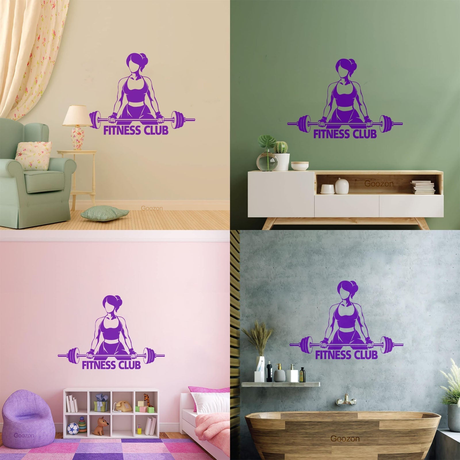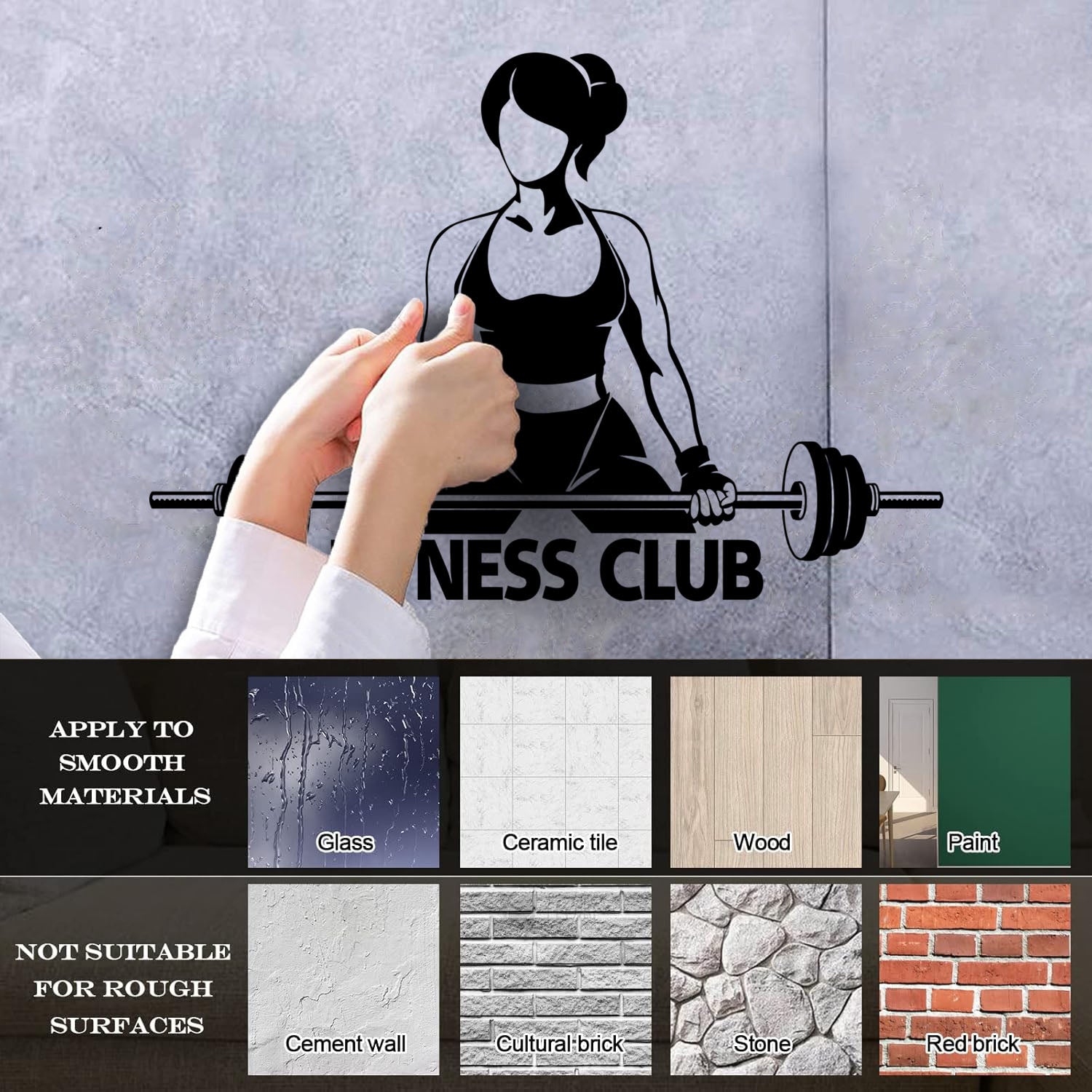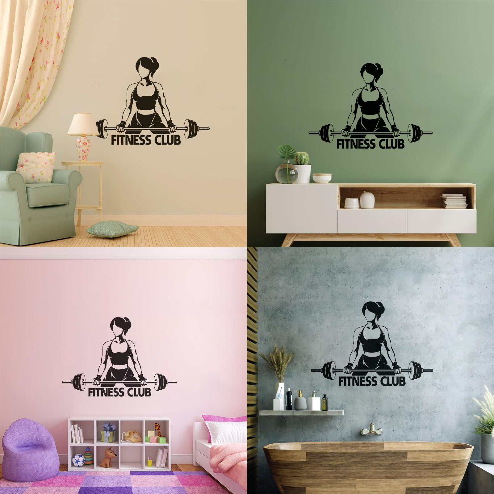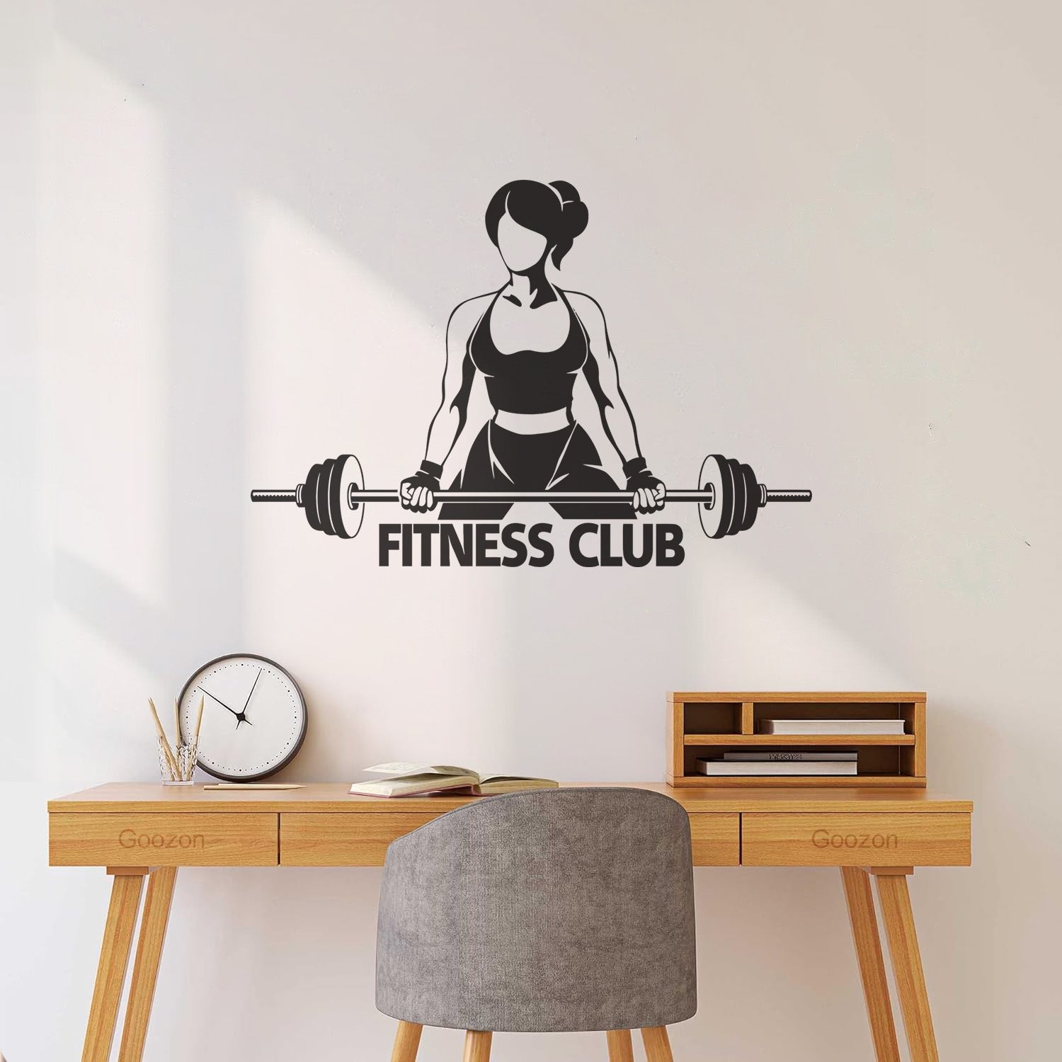 Vinyl Art Sticker Fitnesscenter Club Girl Woman With Barbell Bodybuilding Equipped With Transfer Film Kit