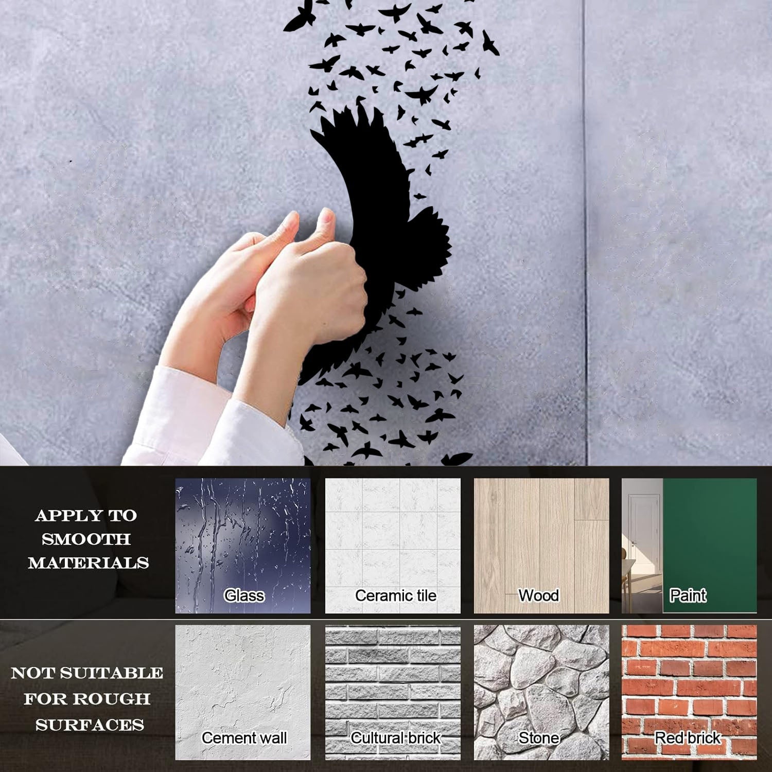 Gently press the decal area to secure it firmly to the wall.