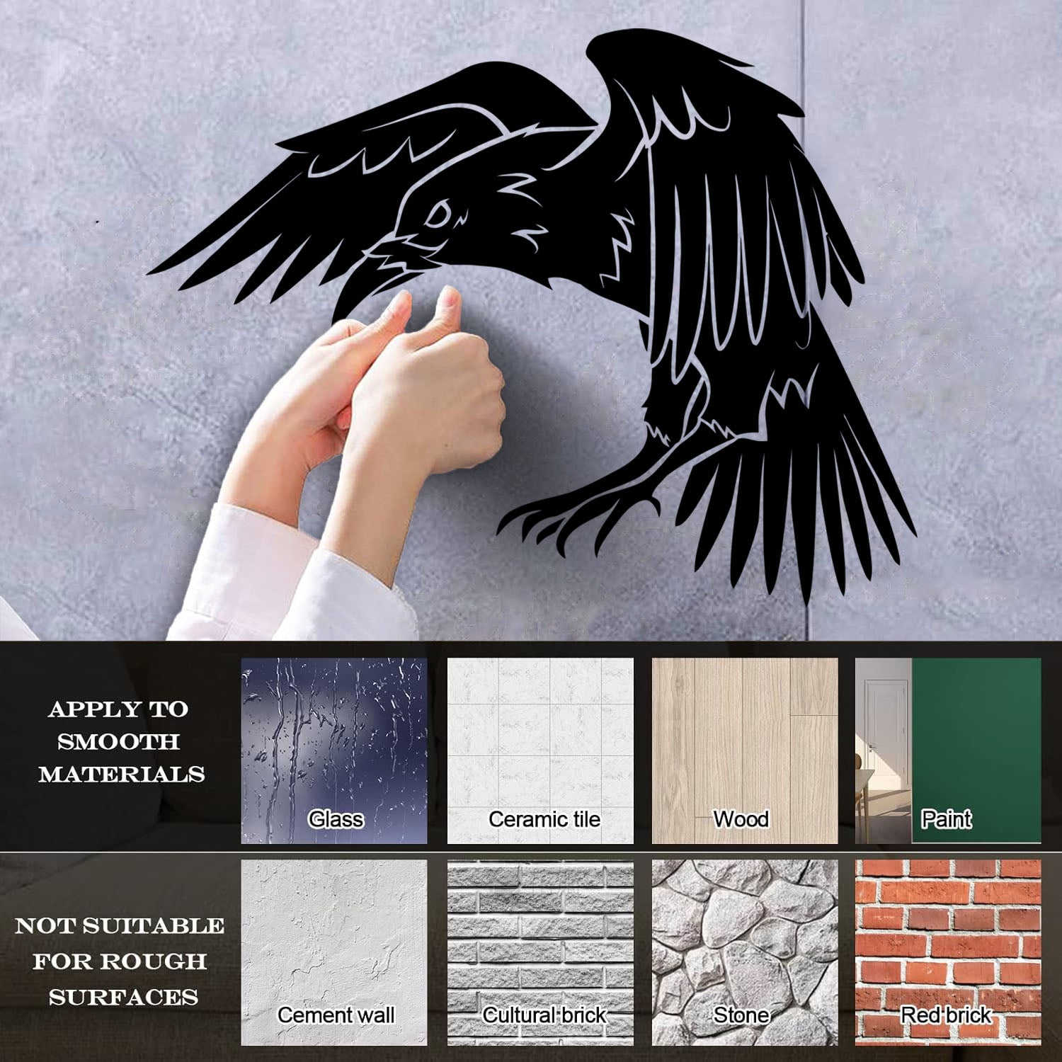 Black Raven Bird Gothic Style Crow Fine Carving Decals Glass Stickers