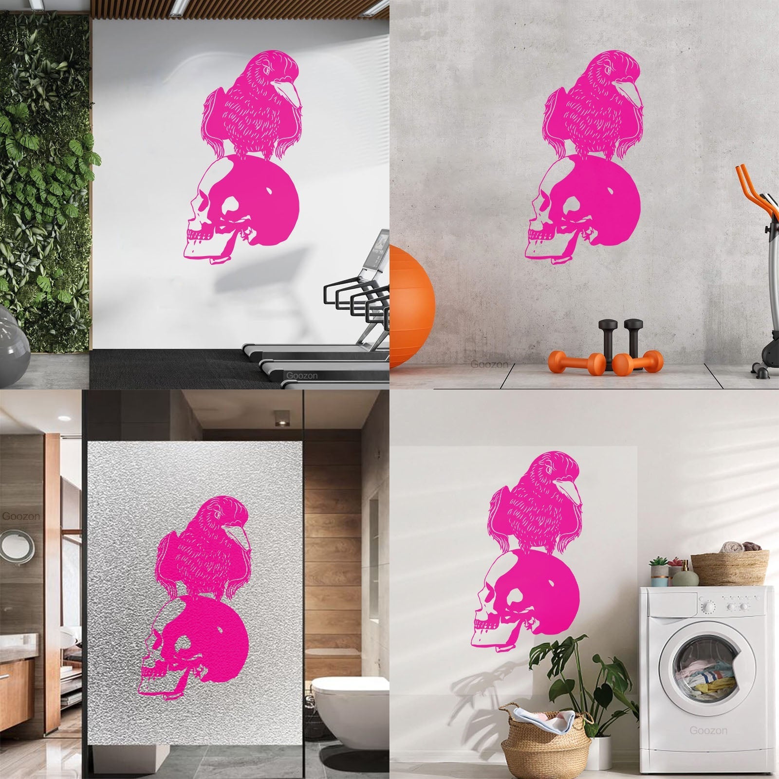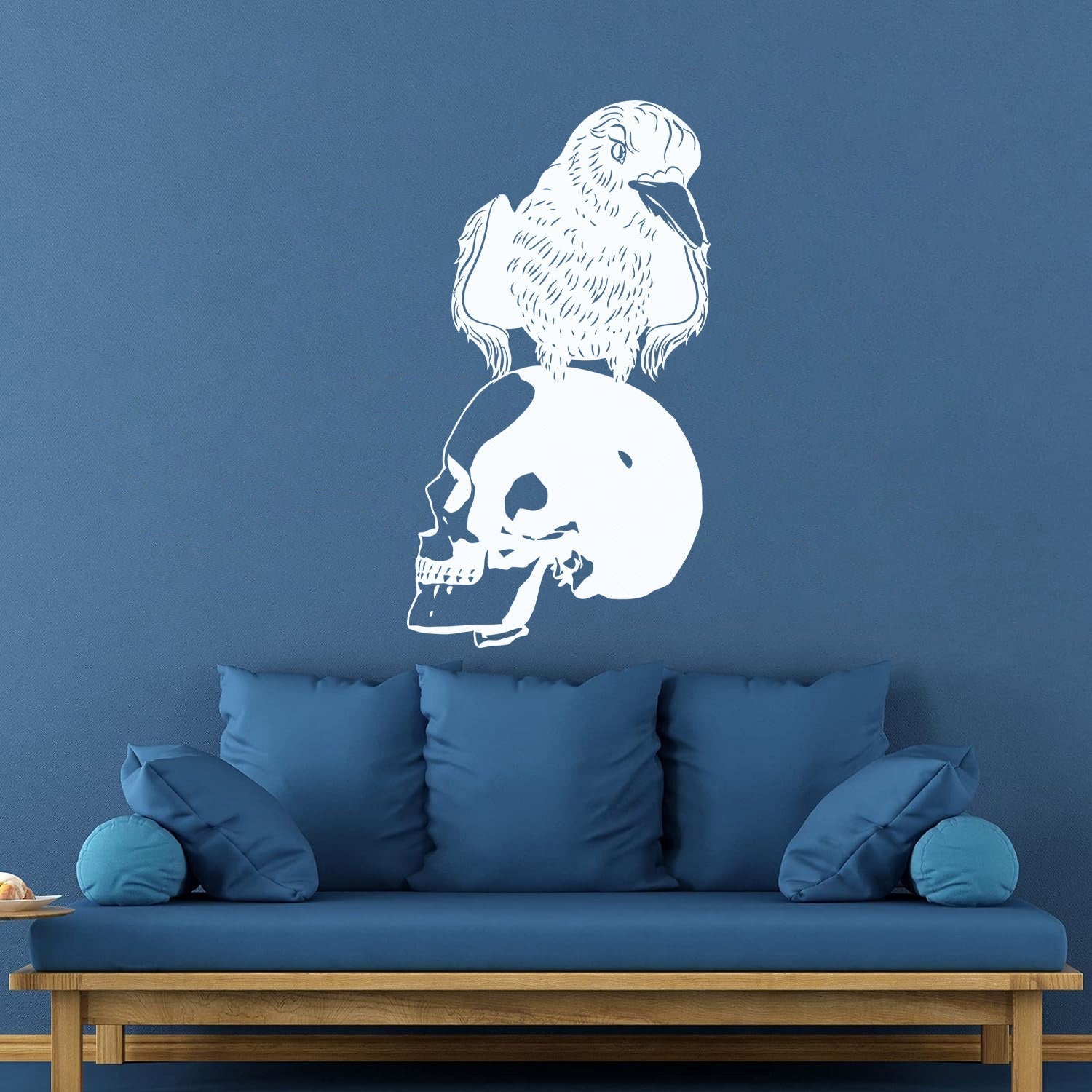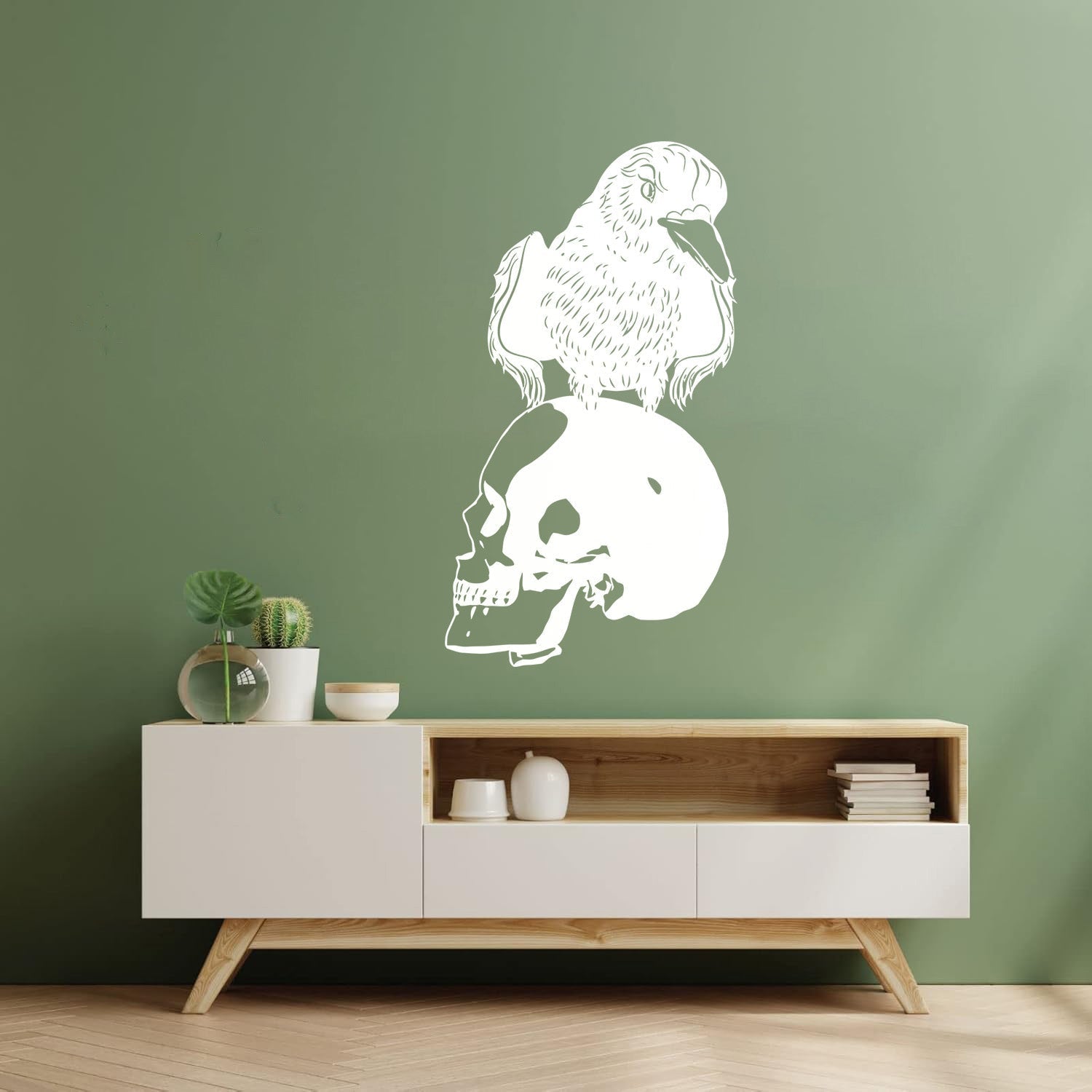 Vinyl Art Sticker Black Raven Bird Skull Horror Gothic Style Store Decoration