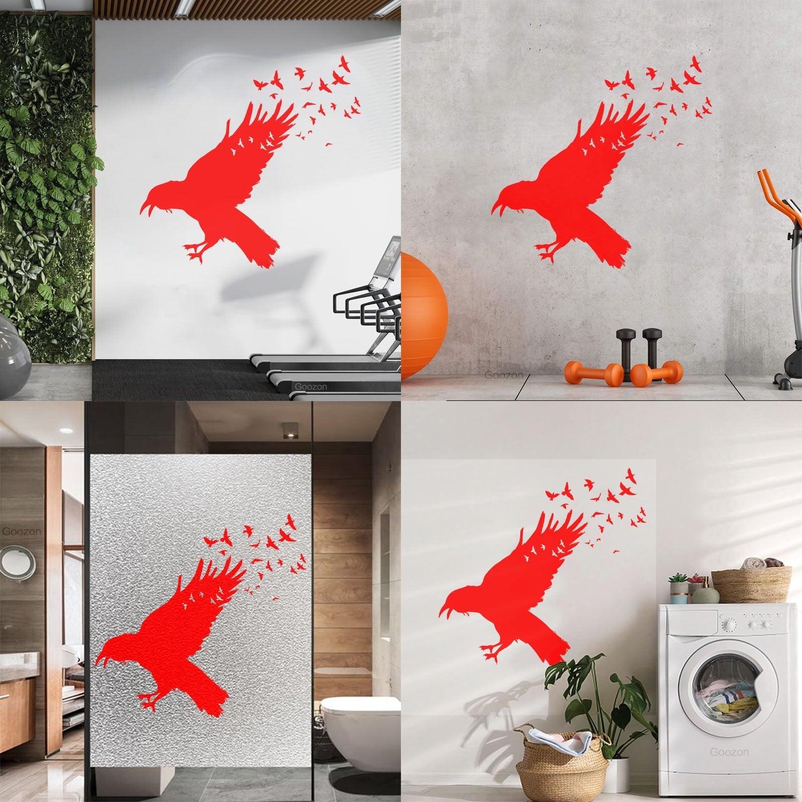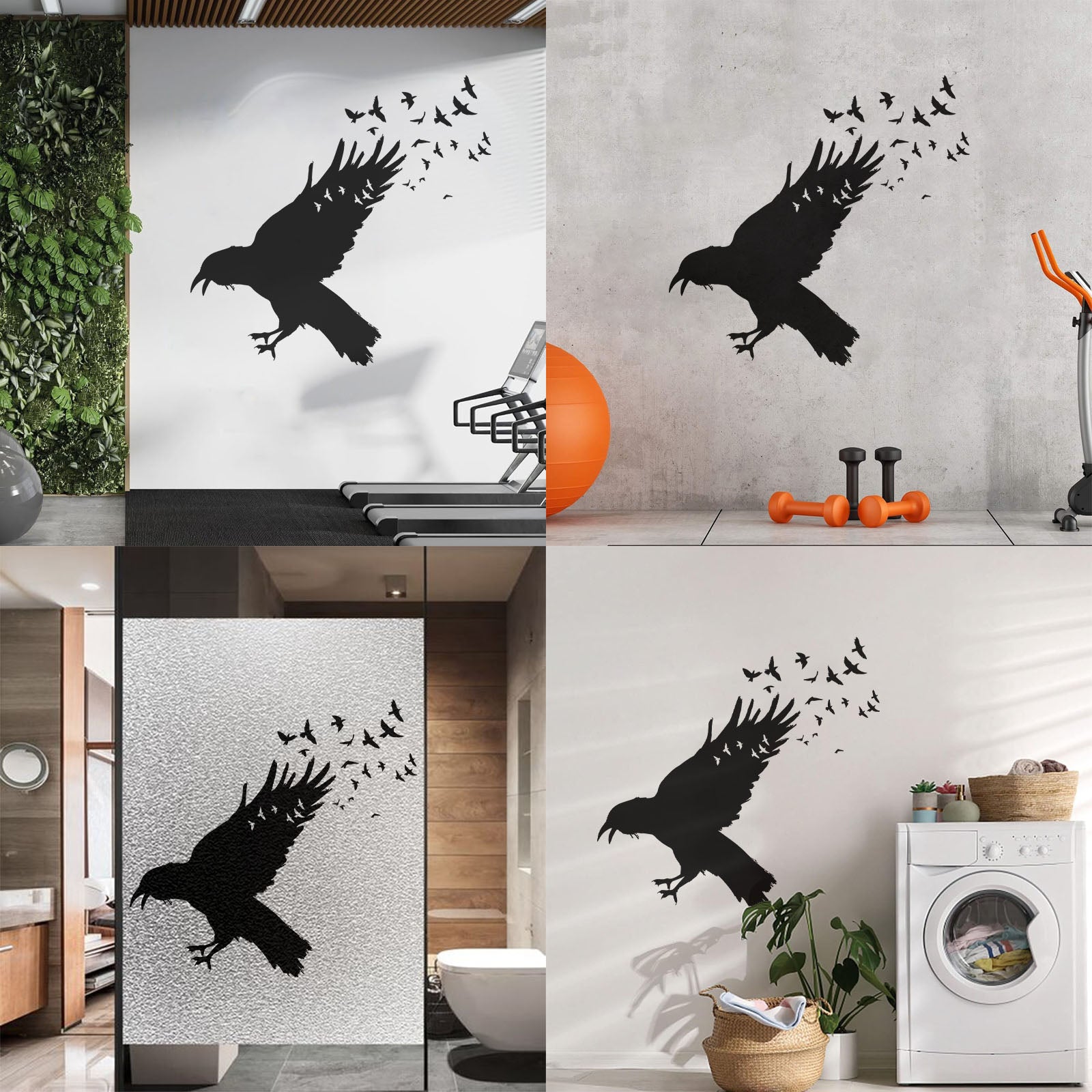 Wall Decals Pvc Black Raven Flock Of Birds Gothic Style Self Adhesive
