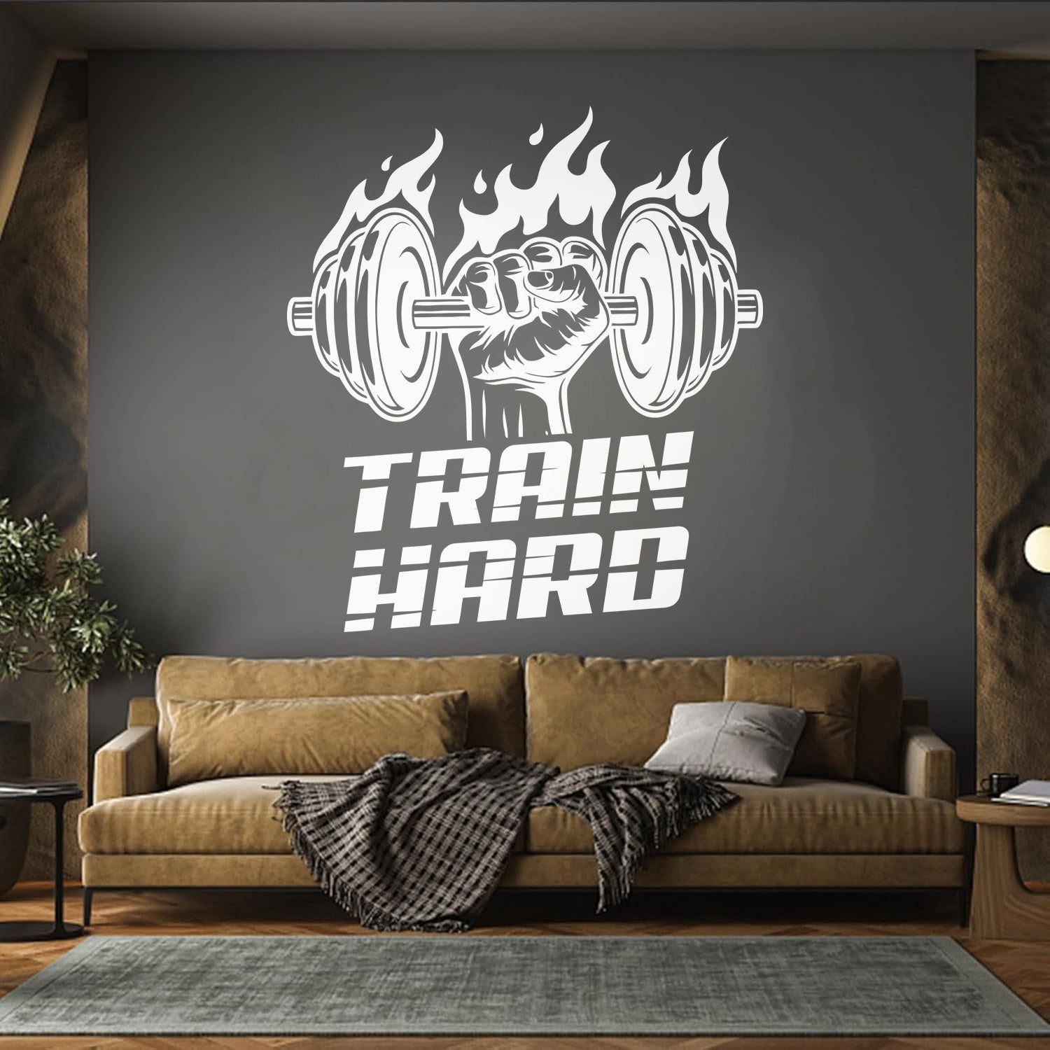 Fine Carving Decals Train Hard Barbell Gymnastics Fitnesscenter Iron Sport Wall Beautification
