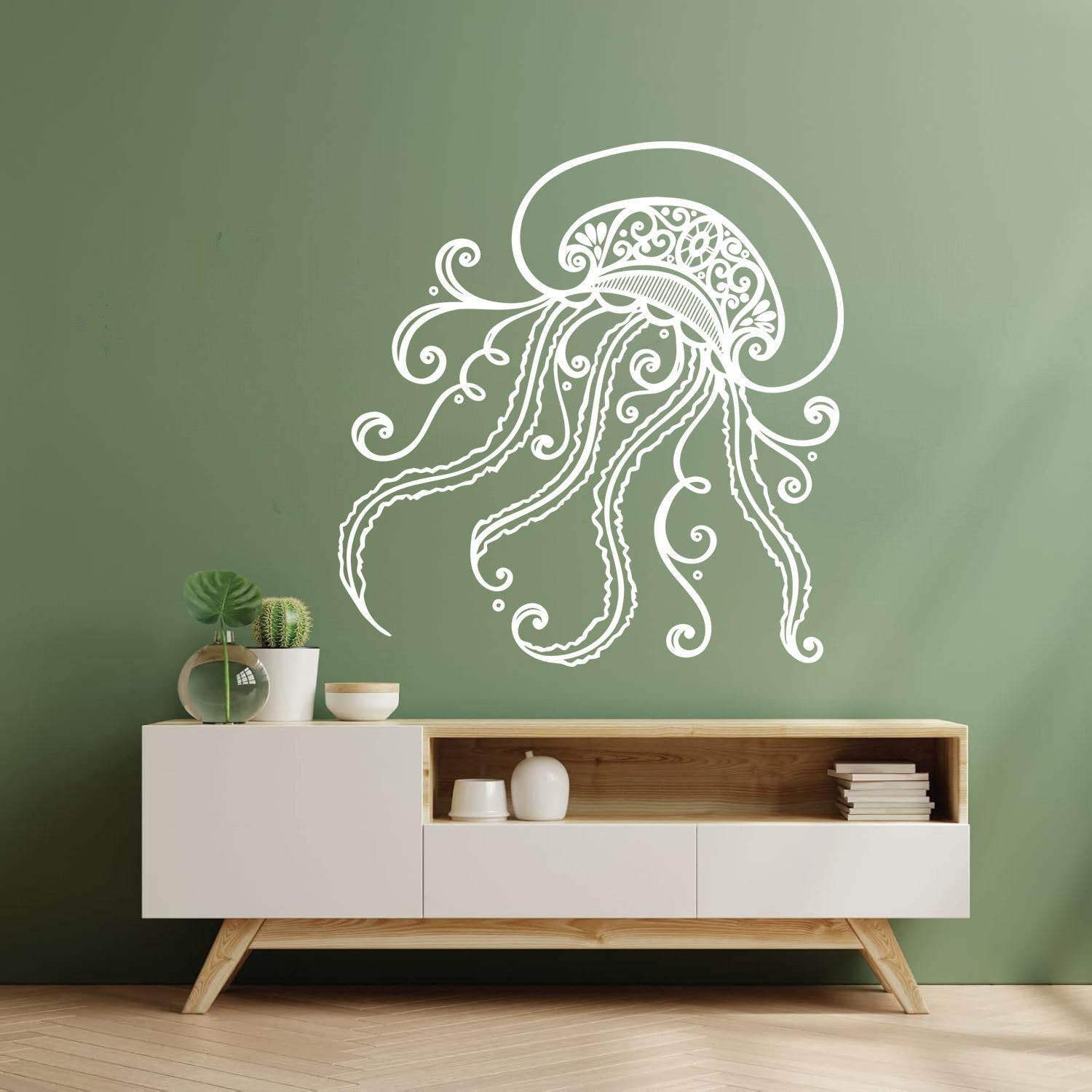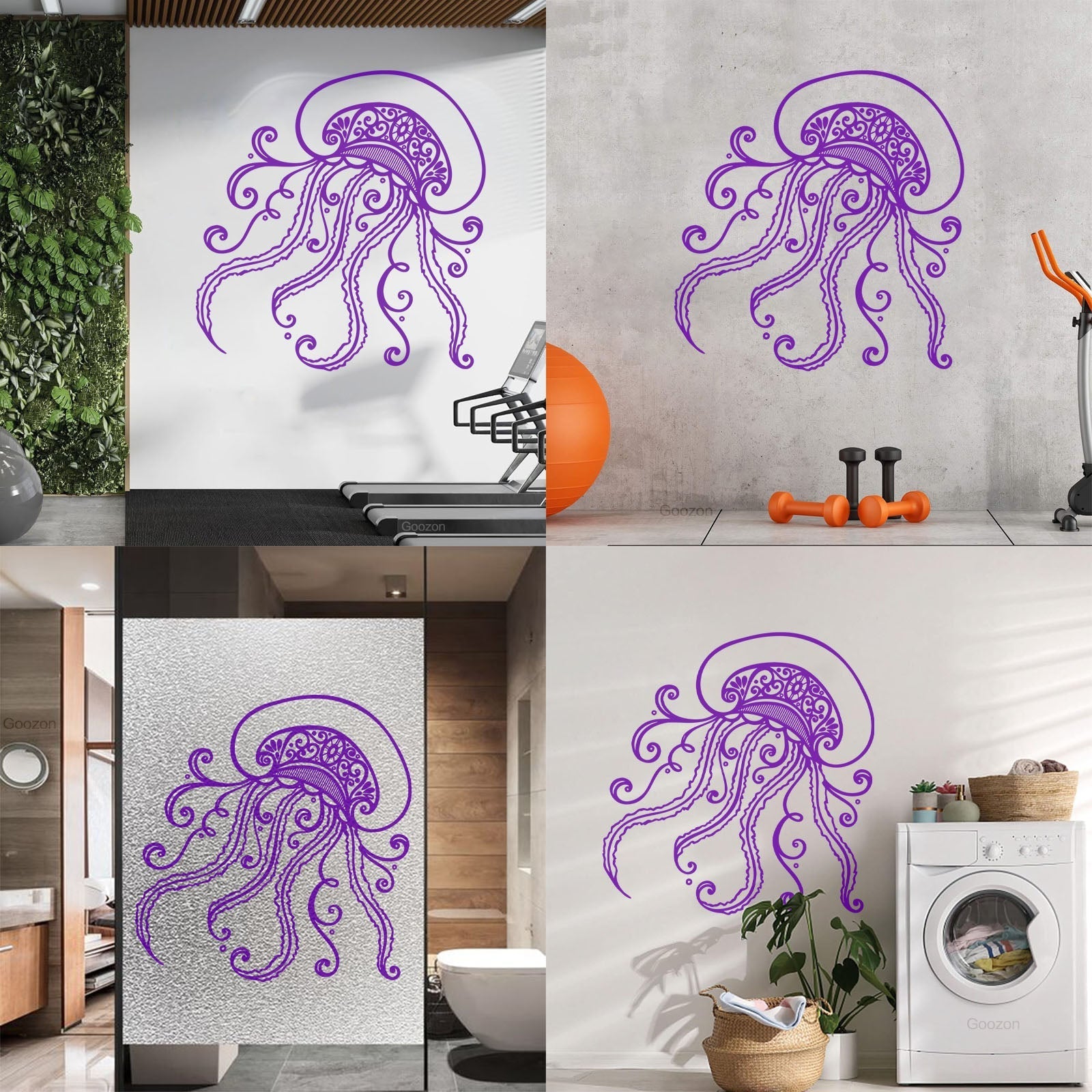 Wall Stickers Beauty Sea Jellyfish Oceans And Seas Inhabitant Glass Stickers